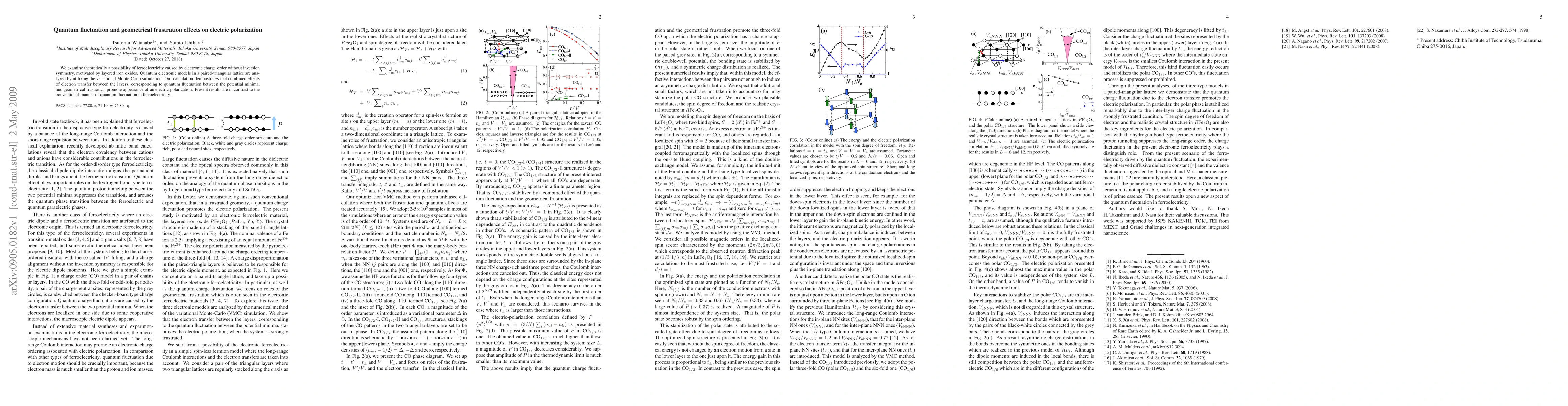 This paper theoretically explores ferroelectricity in layered iron oxides driven by quantum fluctuation and geometrical frustration, revealing that electron transfer between layers and frustration promote electric polarization, contrasting traditional quantum fluctuation effects.