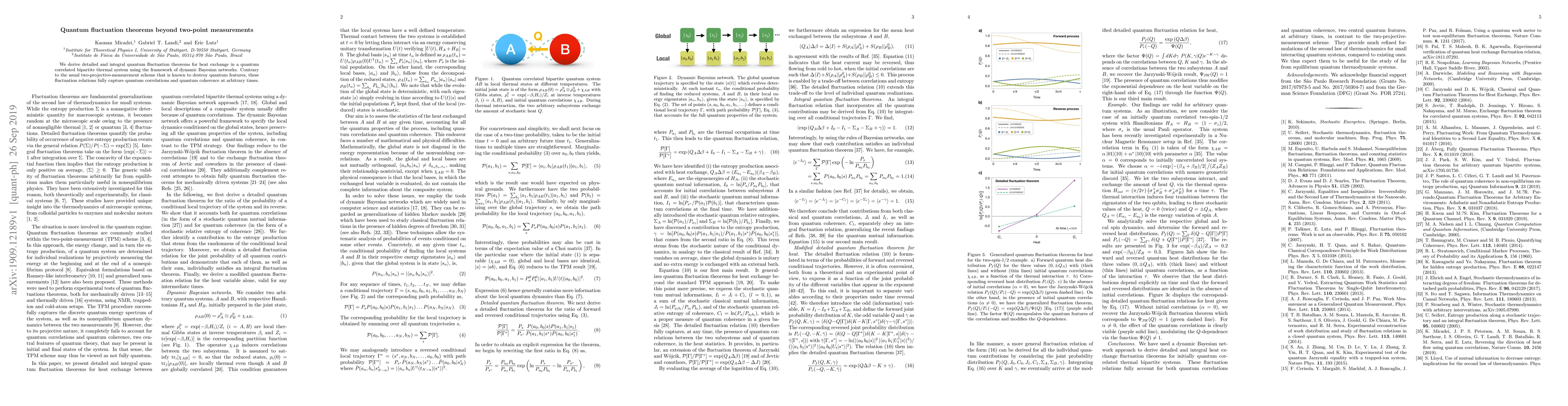 This paper derives detailed and integral quantum fluctuation theorems for heat exchange in quantum correlated systems, utilizing dynamic Bayesian networks to maintain quantum features, unlike traditional two-point measurement methods. These theorems fully capture quantum correlations and coherence at any time.