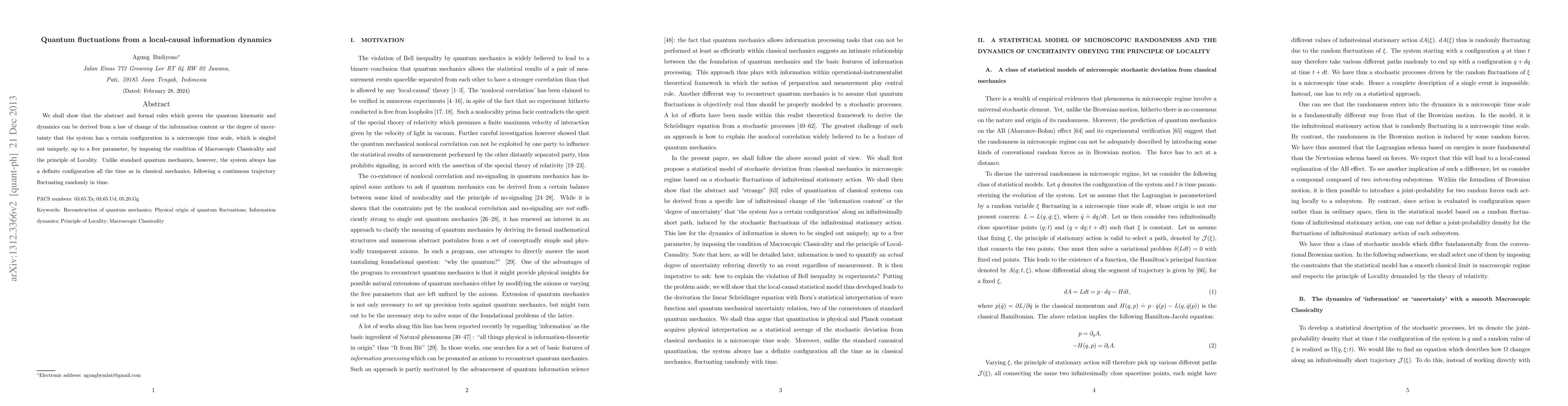 This research shows that quantum behavior can emerge from how information changes over time, with systems always having definite positions but fluctuating randomly. It suggests a new way to understand quantum phenomena through classical-like trajectories influenced by information dynamics.