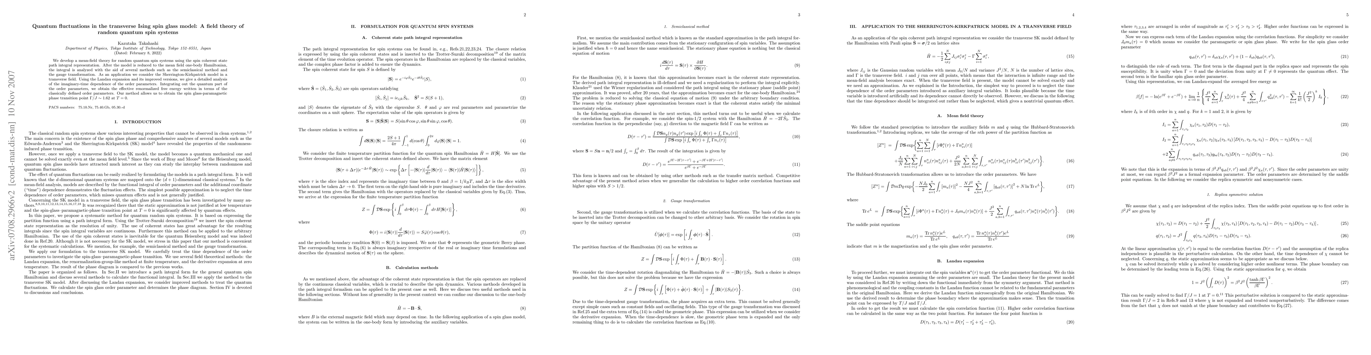 We develop a mean-field theory for random quantum spin systems using the spin coherent state path integral representation. After the model is reduced to the mean field one-body Hamiltonian, the integral is analyzed with the aid of several methods such as the semiclassical method and the gauge transformation. As an application we consider the Sherrington-Kirkpatrick model in a transverse field. Using the Landau expansion and its improved versions, we give a detailed analysis of the imaginary-time dependence of the order parameters. Integrating out the quantum part of the order parameters, we obtain the effective renormalized free energy written in terms of the classically defined order parameters. Our method allows us to obtain the spin glass-paramagnetic phase transition point $\Gamma/J\sim 1.62$ at T=0.