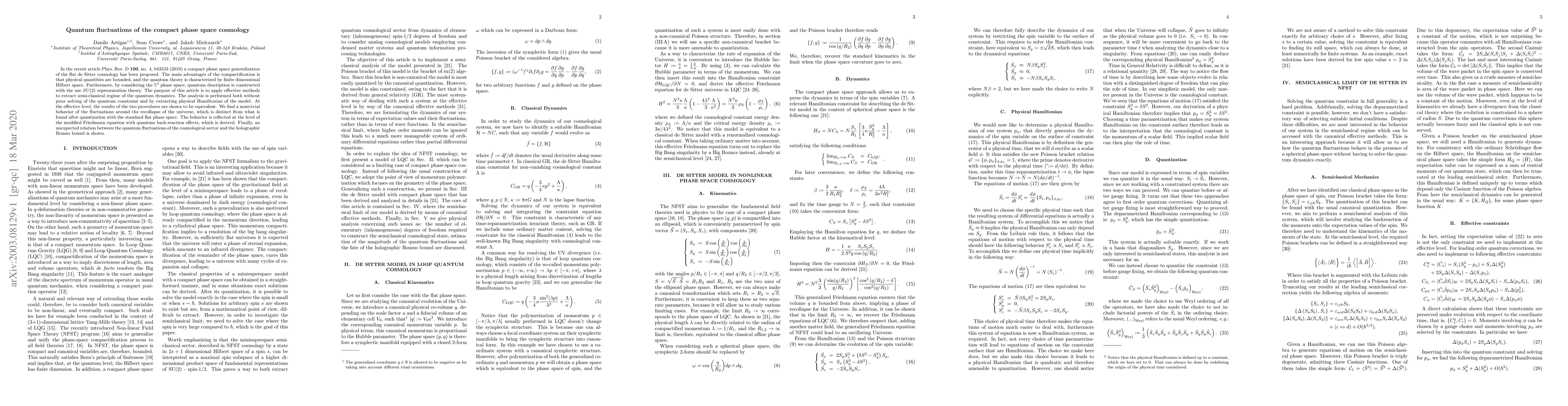 Researchers explored quantum fluctuations in a compact phase space cosmology model, finding nontrivial behavior at universe recollapse and an unexpected relation to the holographic Bousso bound.