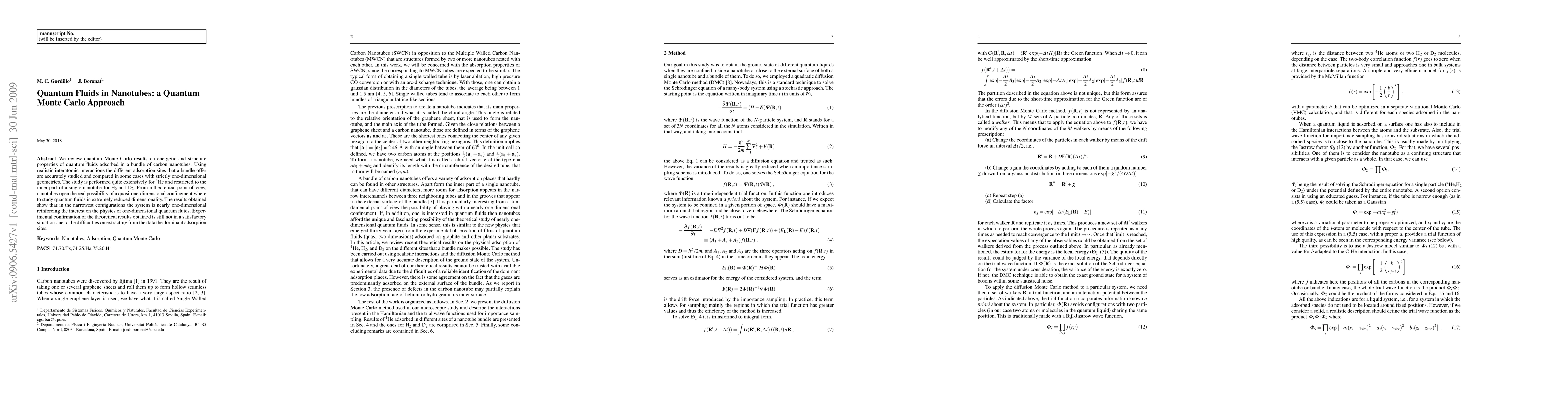 This paper reviews quantum Monte Carlo simulations of quantum fluids in carbon nanotubes, focusing on the energetic and structural properties of $^4$He, H$_2$, and D$_2$ in these nanotubes. The study highlights the potential of nanotubes for quasi-one-dimensional confinement and the nearly one-dimensional behavior in narrow configurations, though experimental validation remains challenging.