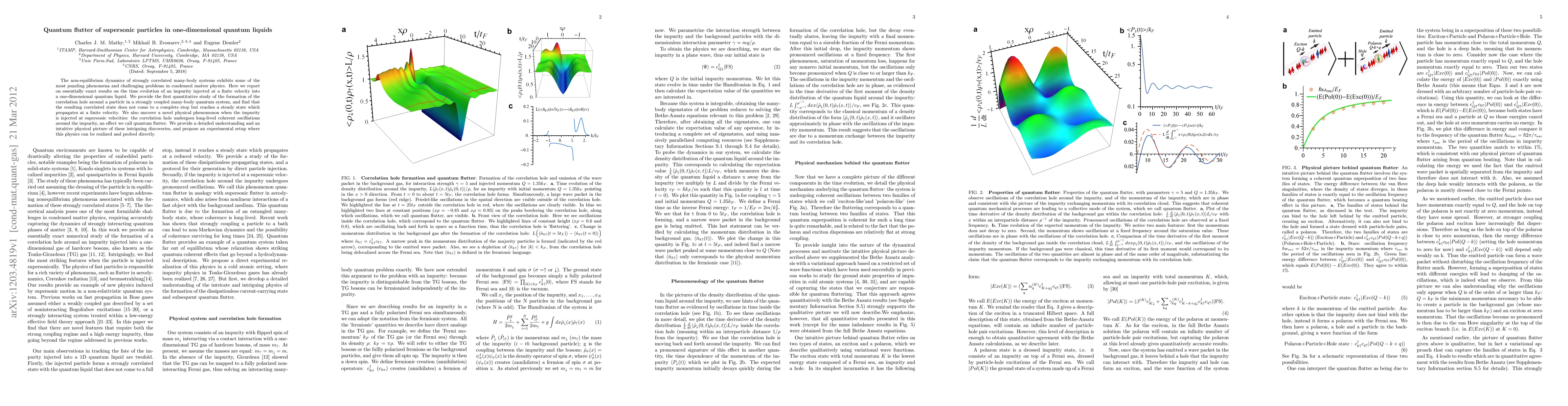 This paper reports on the quantum flutter phenomenon in one-dimensional quantum liquids, where supersonic particles create a correlation hole that oscillates coherently. The study reveals that the correlated state reaches a steady state with finite velocity, offering insights into non-equilibrium dynamics in strongly correlated many-body systems.
