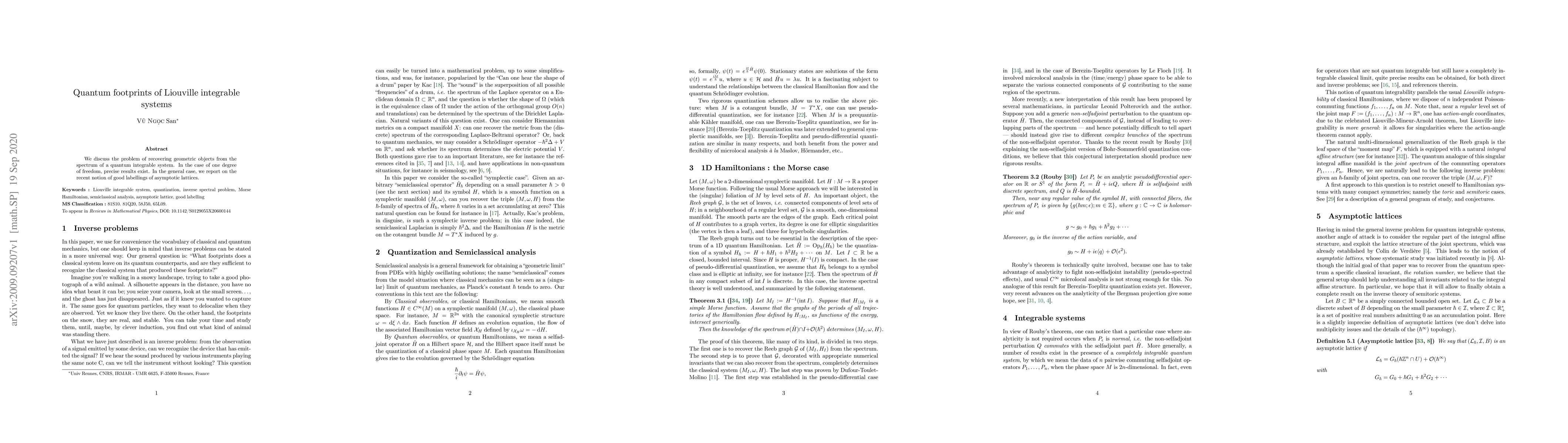 We discuss the problem of recovering geometric objects from the spectrum of a quantum integrable system. In the case of one degree of freedom, precise results exist. In the general case, we report on the recent notion of good labellings of asymptotic lattices.