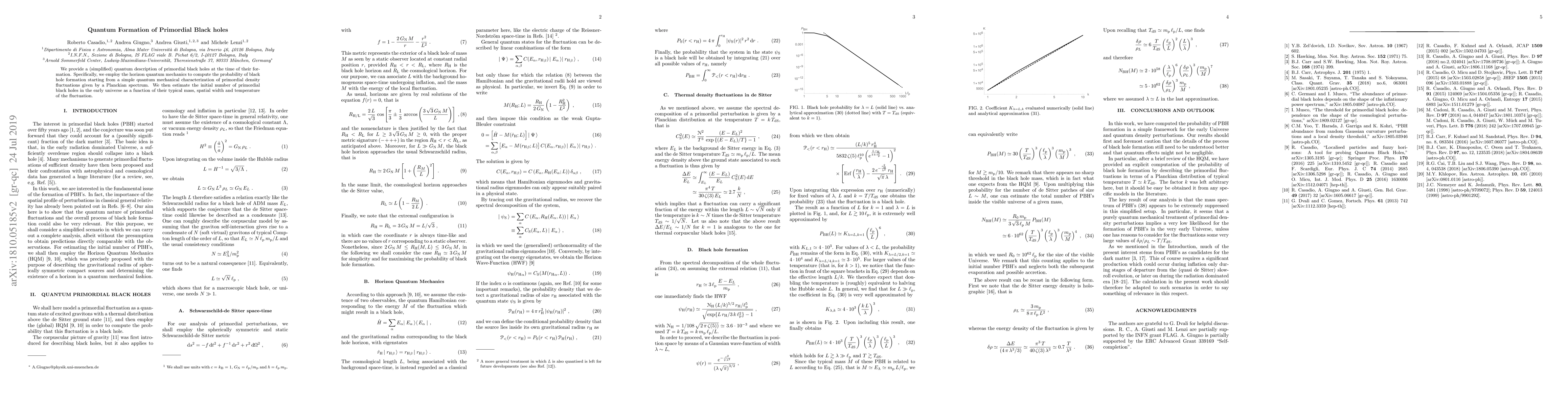 This paper uses horizon quantum mechanics to calculate the probability of primordial black hole formation from quantum density fluctuations characterized by a Planckian spectrum, estimating the initial number of such black holes based on their mass and the temperature of the fluctuations.
