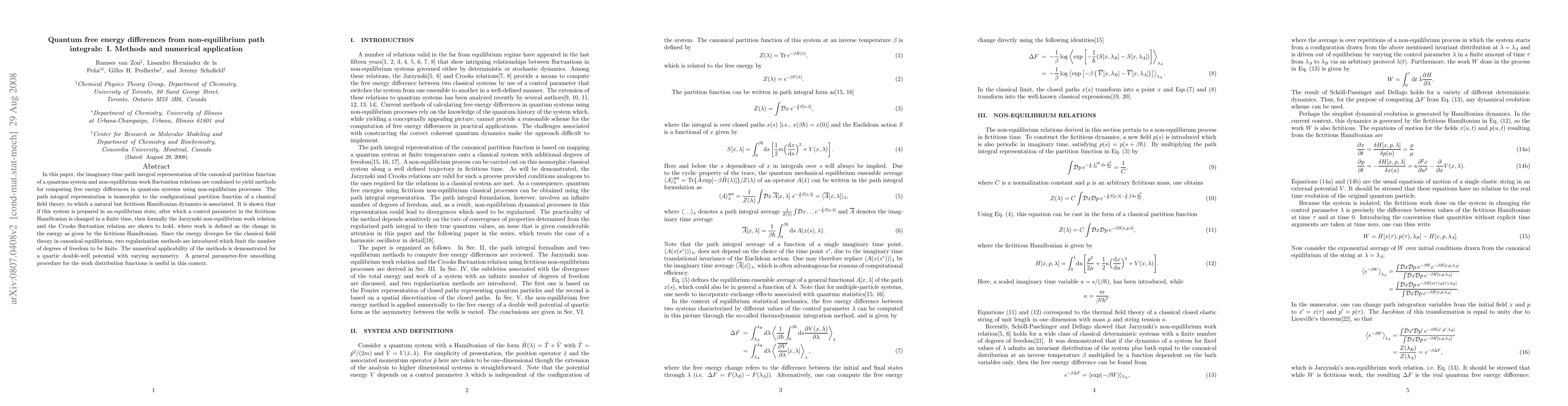 This paper introduces methods for computing quantum free energy differences using non-equilibrium path integrals, combining imaginary-time path integrals with non-equilibrium work fluctuation relations. It demonstrates numerical applications for a quartic double-well potential and presents regularization techniques to handle divergent energies in classical field theory.