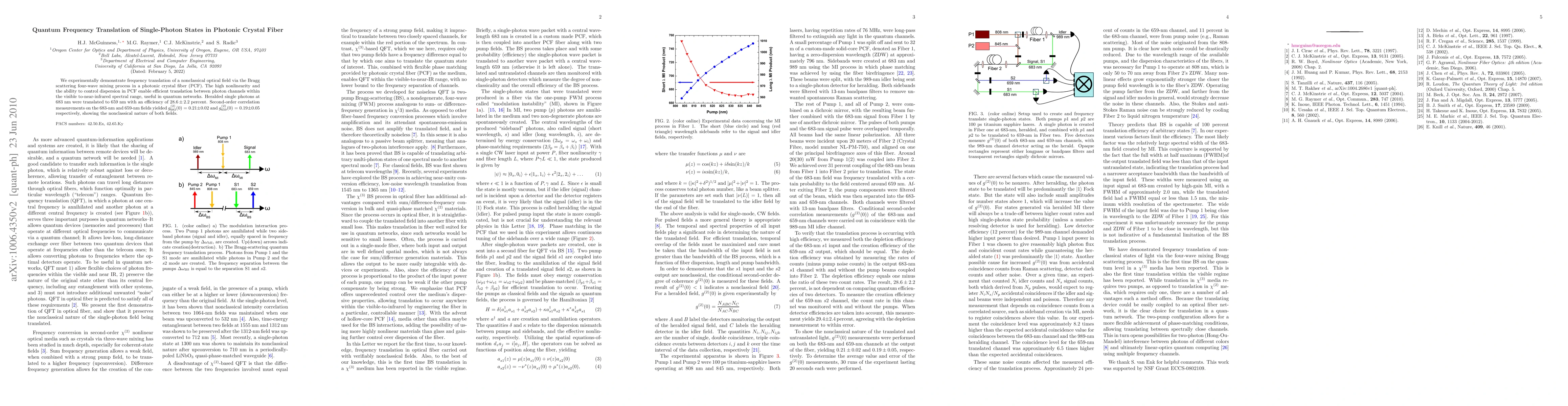 The research demonstrates efficient quantum frequency translation of single-photon states from 683 nm to 659 nm using Bragg scattering four-wave mixing in photonic crystal fiber. The process maintains the nonclassical nature of the photons, with second-order correlation measurements confirming their inherent quantum properties, crucial for quantum network development.