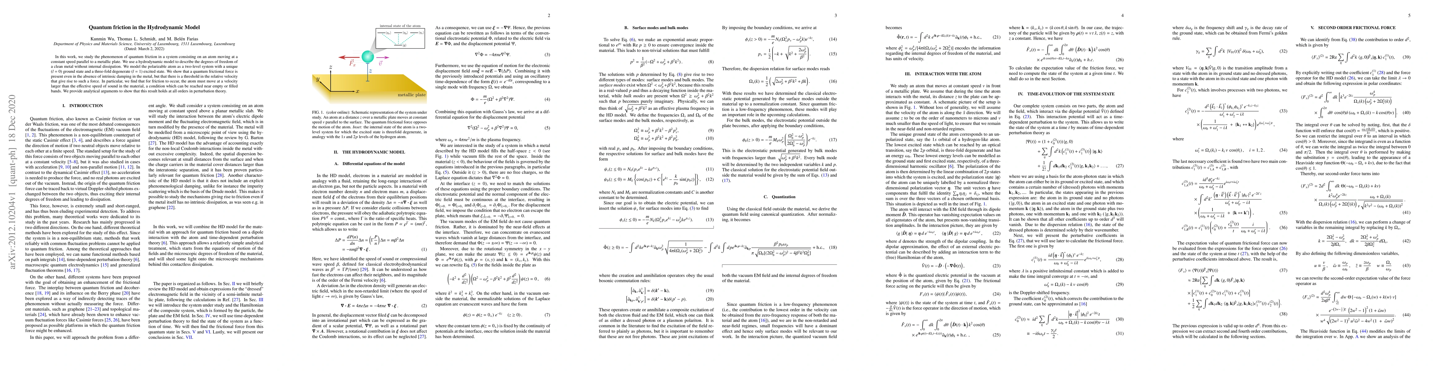 Researchers found a quantum friction force between an atom moving parallel to a metal surface, which only starts when the atom's velocity exceeds the metal's speed of sound. This phenomenon occurs in metals with nearly empty or filled bands and has implications for our understanding of quantum interactions at metal-atom interfaces.