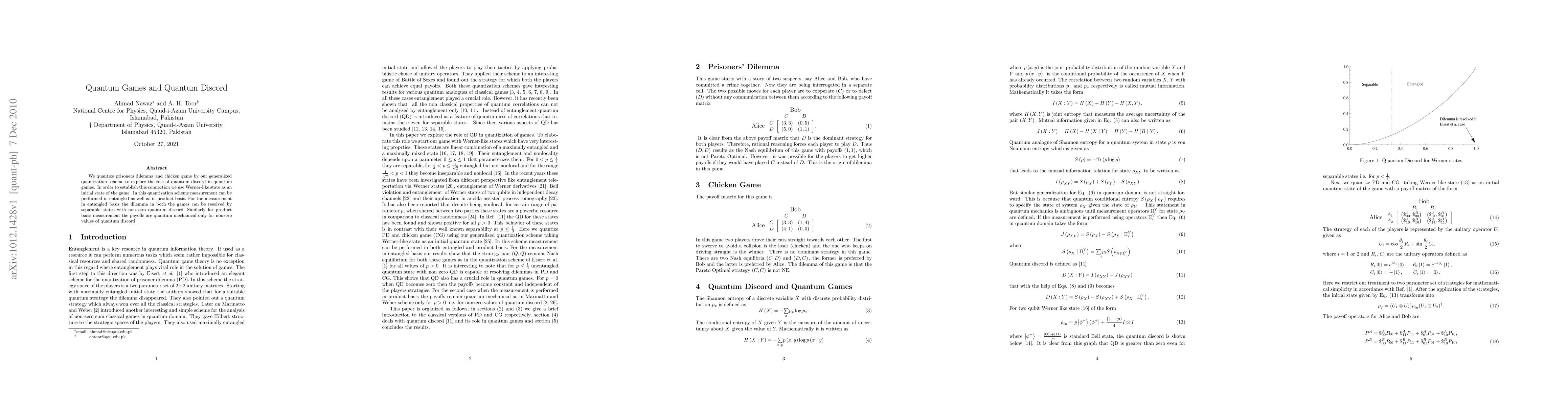 We quantize prisoners dilemma and chicken game by our generalized quantization scheme to explore the role of quantum discord in quantum games. In order to establish this connection we use Werner-like state as an initial state of the game. In this quantization scheme measurement can be performed in entangled as well as in product basis. For the measurement in entangled basis the dilemma in both the games can be resolved by separable states with non-zero quantum discord. Similarly for product basis measurement the payoffs are quantum mechanical only for nonzero values of quantum discord.