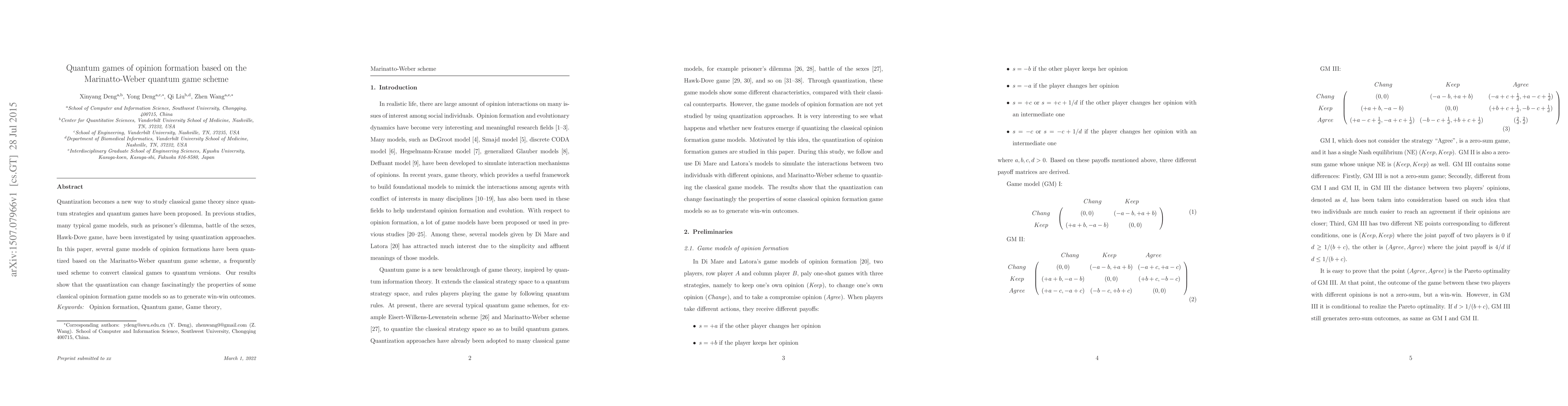 This paper quantizes classical opinion formation game models using the Marinatto-Weber quantum game scheme, revealing that quantization can transform these games to produce win-win outcomes, altering their traditional properties.