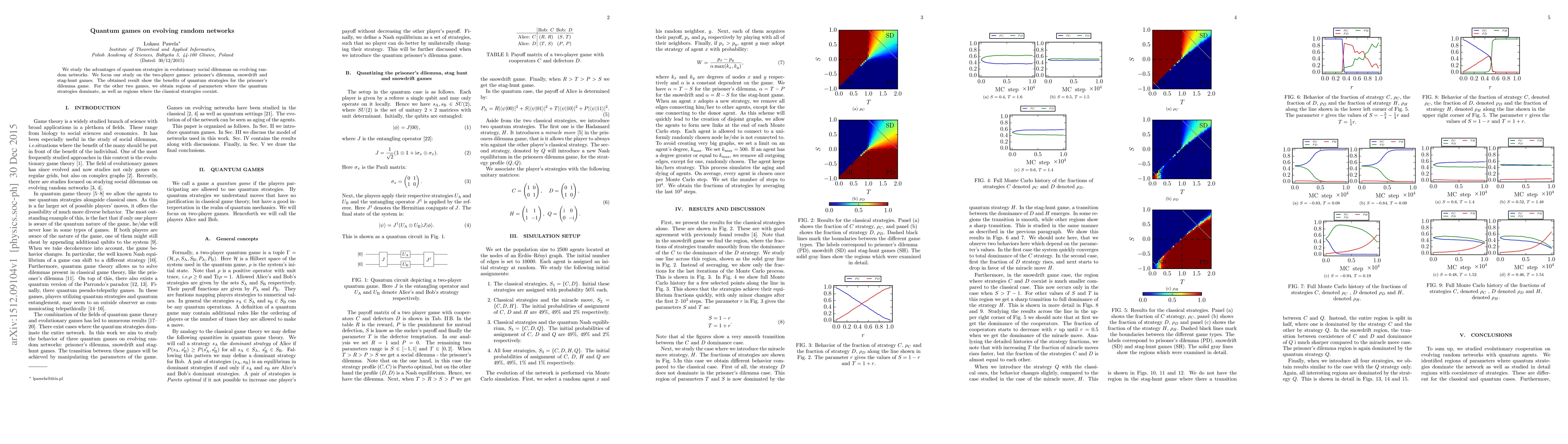 We study the advantages of quantum strategies in evolutionary social dilemmas on evolving random networks. We focus our study on the two-player games: prisoner's dilemma, snowdrift and stag-hunt games. The obtained result show the benefits of quantum strategies for the prisoner's dilemma game. For the other two games, we obtain regions of parameters where the quantum strategies dominate, as well as regions where the classical strategies coexist.