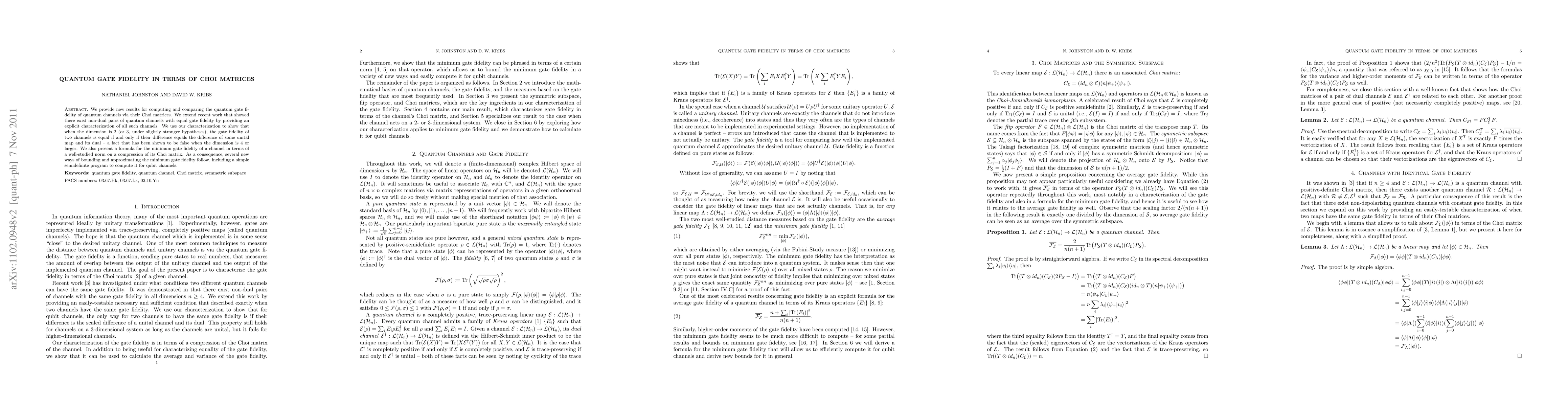 This paper introduces a new method for computing quantum gate fidelity of channels using their Choi matrices, showing that for dimensions 2 and 3, equal gate fidelity implies a specific structural relationship between the channels. It also provides a formula for the minimum gate fidelity and a semidefinite program for qubit channels.