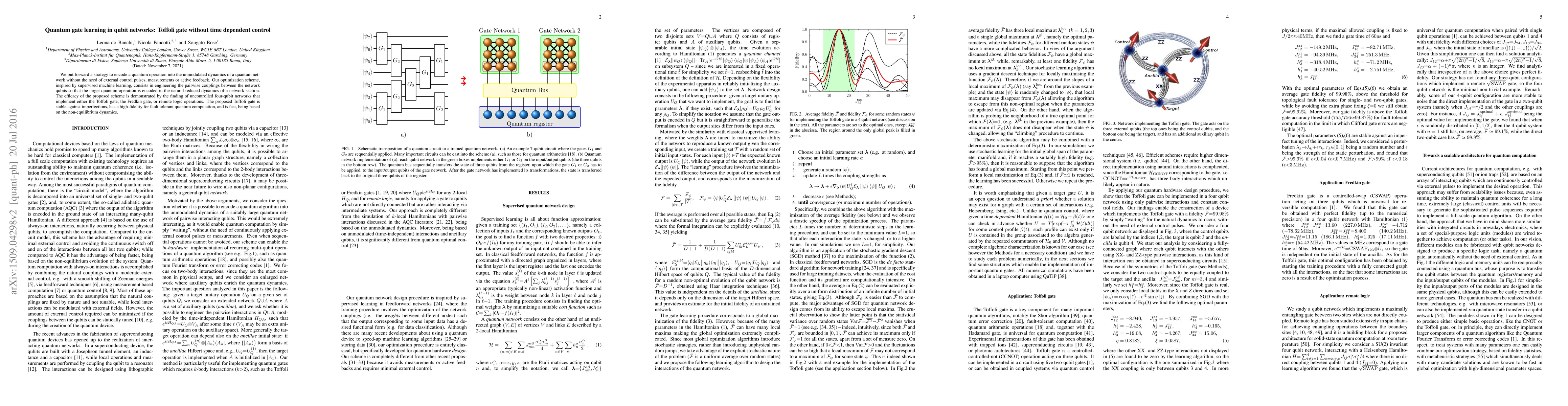 We put forward a strategy to encode a quantum operation into the unmodulated dynamics of a quantum network without the need of external control pulses, measurements or active feedback. Our optimization scheme, inspired by supervised machine learning, consists in engineering the pairwise couplings between the network qubits so that the target quantum operation is encoded in the natural reduced dynamics of a network section. The efficacy of the proposed scheme is demonstrated by the finding of uncontrolled four-qubit networks that implement either the Toffoli gate, the Fredkin gate, or remote logic operations. The proposed Toffoli gate is stable against imperfections, has a high-fidelity for fault tolerant quantum computation, and is fast, being based on the non-equilibrium dynamics.