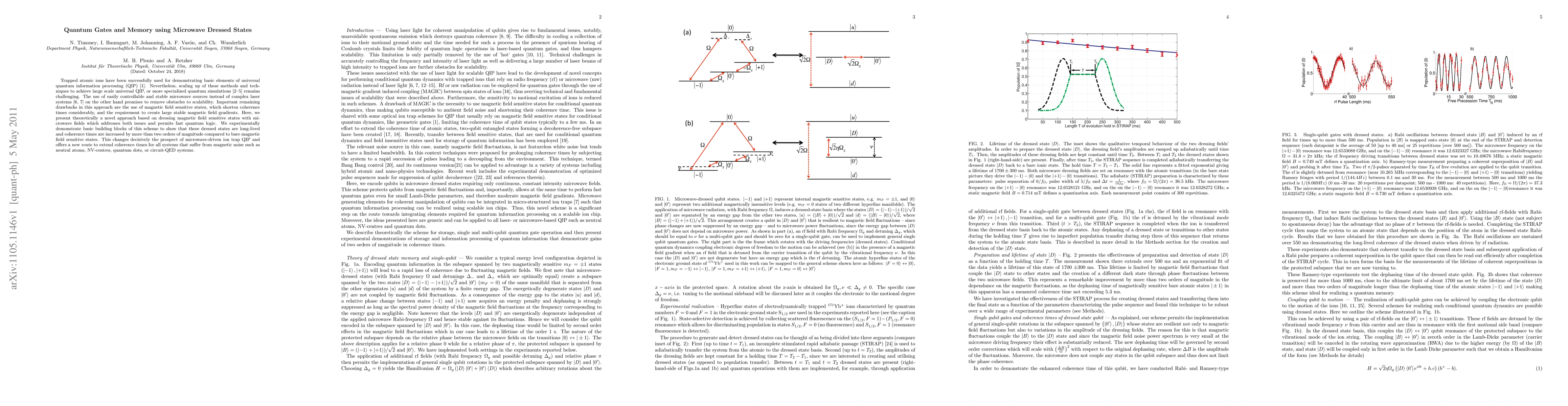 Trapped atomic ions have been successfully used for demonstrating basic elements of universal quantum information processing (QIP). Nevertheless, scaling up of these methods and techniques to achieve large scale universal QIP, or more specialized quantum simulations remains challenging. The use of easily controllable and stable microwave sources instead of complex laser systems on the other hand promises to remove obstacles to scalability. Important remaining drawbacks in this approach are the use of magnetic field sensitive states, which shorten coherence times considerably, and the requirement to create large stable magnetic field gradients. Here, we present theoretically a novel approach based on dressing magnetic field sensitive states with microwave fields which addresses both issues and permits fast quantum logic. We experimentally demonstrate basic building blocks of this scheme to show that these dressed states are long-lived and coherence times are increased by more than two orders of magnitude compared to bare magnetic field sensitive states. This changes decisively the prospect of microwave-driven ion trap QIP and offers a new route to extend coherence times for all systems that suffer from magnetic noise such as neutral atoms, NV-centres, quantum dots, or circuit-QED systems.