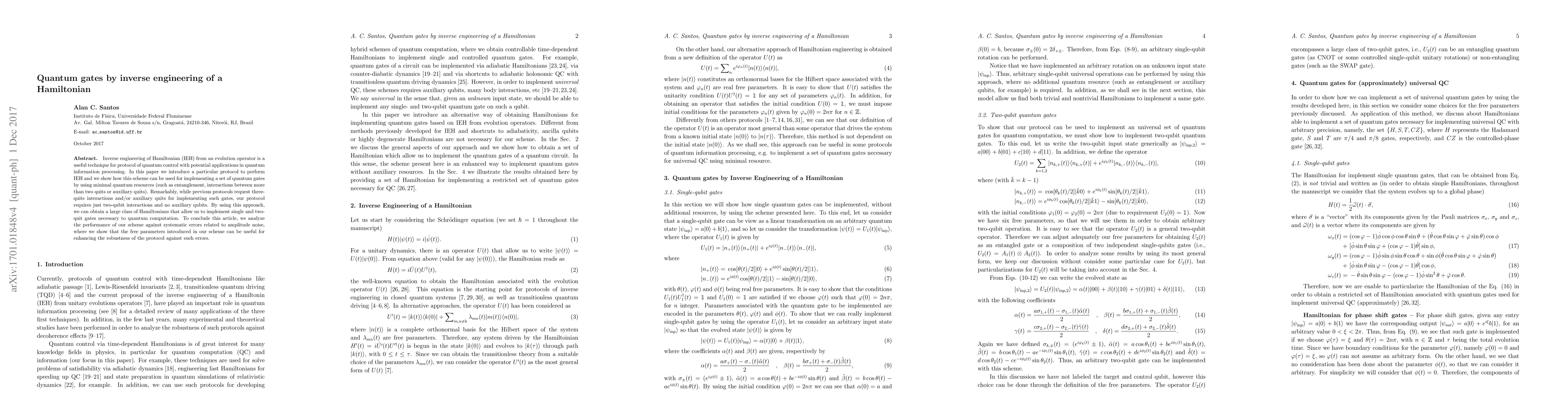 Inverse engineering of Hamiltonian (IEH) from an evolution operator is a useful technique for protocol of quantum control with potential applications in quantum information processing. In this paper we introduce a particular protocol to perform IEH and we show how this scheme can be used for implementing a set of quantum gates by using minimal quantum resources (such as entanglement, interactions between more than two quits or auxiliary quits). Remarkably, while previous protocols request three-quits interactions and/or auxiliary quits for implementing such gates, our protocol requires just two-qubit interactions and no auxiliary qubits. By using this approach, we can obtain a large class of Hamiltonians that allow us to implement single and two-quit gates necessary to quantum computation. To conclude this article, we analyze the performance of our scheme against systematic errors related to amplitude noise, where we show that the free parameters introduced in our scheme can be useful for enhancing the robustness of the protocol against such errors.