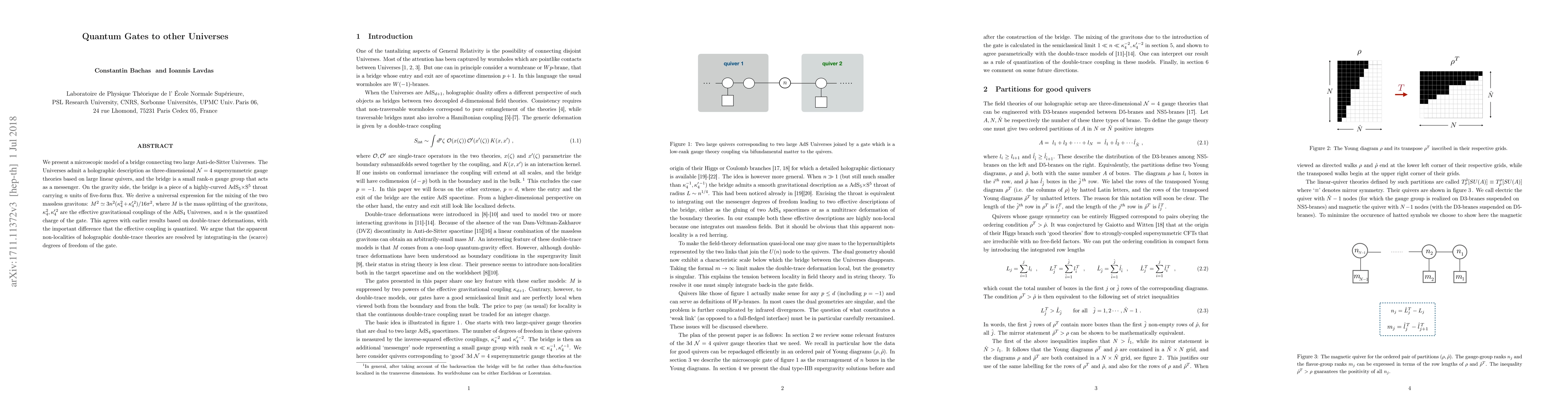 We present a microscopic model of a bridge connecting two large Anti-de-Sitter Universes. The Universes admit a holographic description as three-dimensional ${\cal N}=4$ supersymmetric gauge theories based on large linear quivers, and the bridge is a small rank-$n$ gauge group that acts as a messenger. On the gravity side, the bridge is a piece of a highly-curved AdS$_5\times$S$_5$ throat carrying $n$ units of five-form flux. We derive a universal expression for the mixing of the two massless gravitons: $M^2 \simeq 3n^2 (\kappa_4^2 + \kappa_4^{\prime\,2})/16\pi^2$, where $M$ is the mass splitting of the gravitons, $\kappa_4^2, \kappa_4^{\prime\,2}$ are the effective gravitational couplings of the AdS$_4$ Universes, and $n$ is the quantized charge of the gate. This agrees with earlier results based on double-trace deformations, with the important difference that the effective coupling is here quantized. We argue that the apparent non-localities of holographic double-trace models are resolved by integrating-in the (scarce) degrees of freedom of the gate.