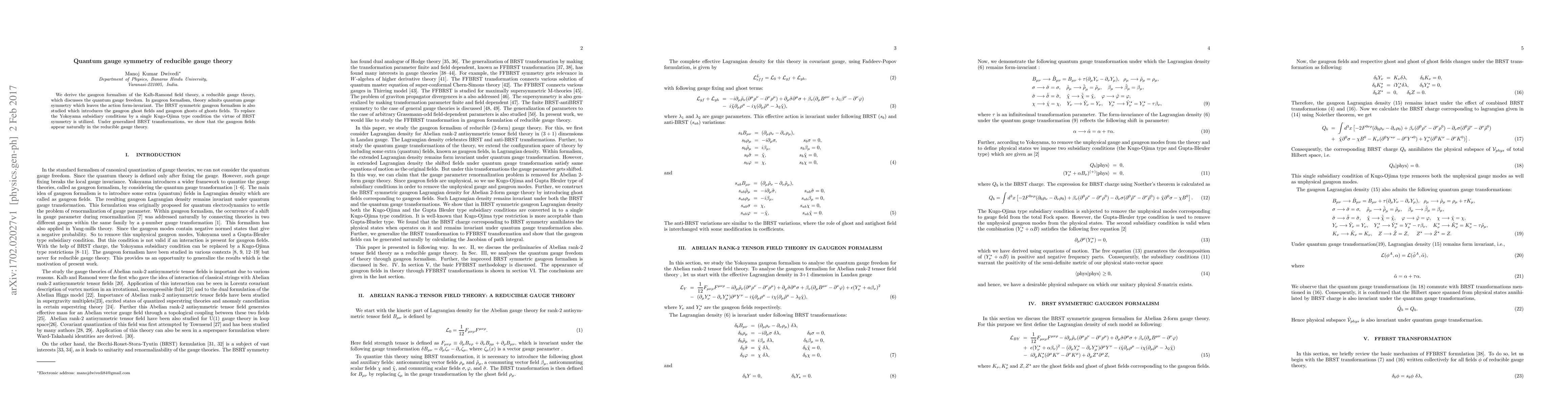 We derive the gaugeon formalism of the Kalb-Ramond field theory, a reducible gauge theory, which discusses the quantum gauge freedom. In gaugeon formalism, theory admits quantum gauge symmetry which leaves the action form-invariant. The BRST symmetric gaugeon formalism is also studied which introduces the gaugeon ghost fields and gaugeon ghosts of ghosts fields. To replace the Yokoyama subsidiary conditions by a single Kugo-Ojima type condition the virtue of BRST symmetry is utilized. Under generalized BRST transformations, we show that the gaugeon fields appear naturally in the reducible gauge theory.