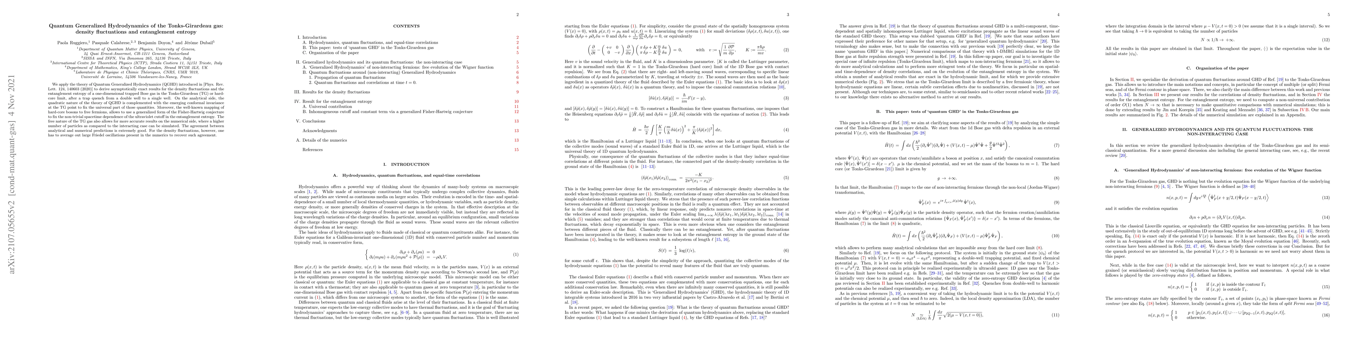 Researchers apply Quantum Generalized Hydrodynamics to study a one-dimensional trapped Bose gas in the Tonks-Girardeau limit after a trap quench, achieving good agreement between analytical and numerical predictions for density fluctuations and entanglement entropy.