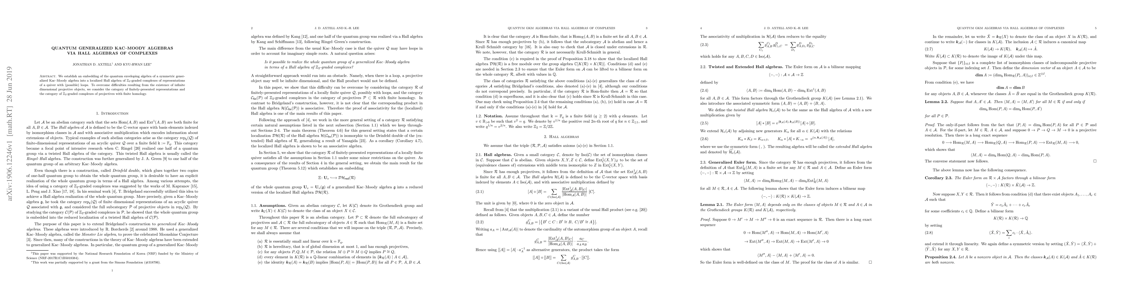 Summary: This research embeds the quantum enveloping algebra of a generalized Kac-Moody algebra into a localized Hall algebra of $\mathbb{Z}_2$-graded complexes, addressing infinite dimensional projectives through finitely-presented representations and $\mathbb{Z}_2$-graded complexes with finite homology.