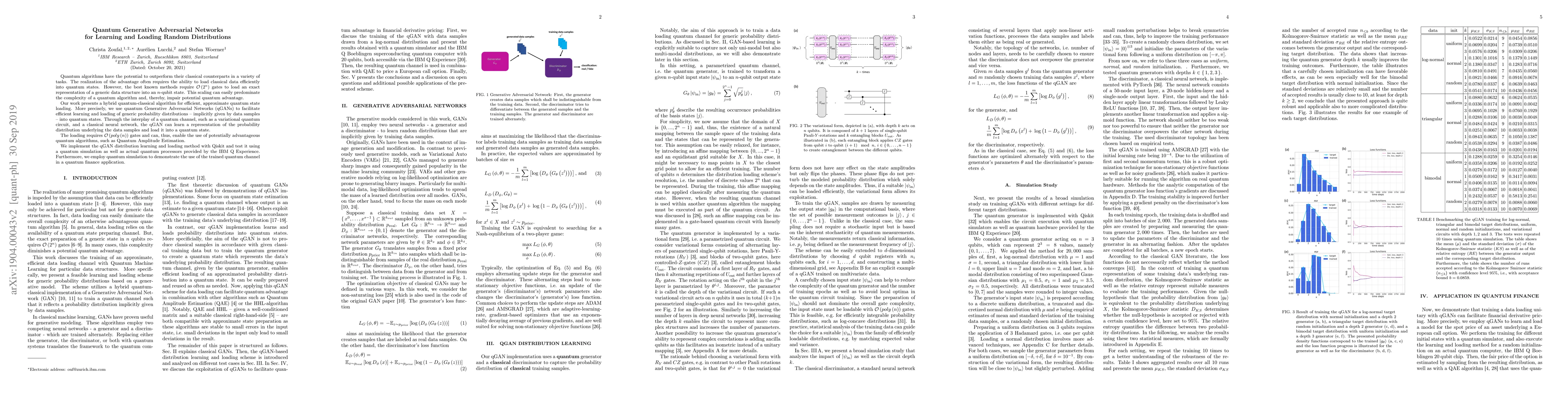 This paper introduces a hybrid quantum-classical algorithm using quantum Generative Adversarial Networks (qGANs) to efficiently load probability distributions from data samples into quantum states, requiring polynomial rather than exponential gate complexity. The approach leverages a variational quantum circuit and a classical neural network to facilitate quantum state loading, enabling the use of quantum algorithms like Quantum Amplitude Estimation.