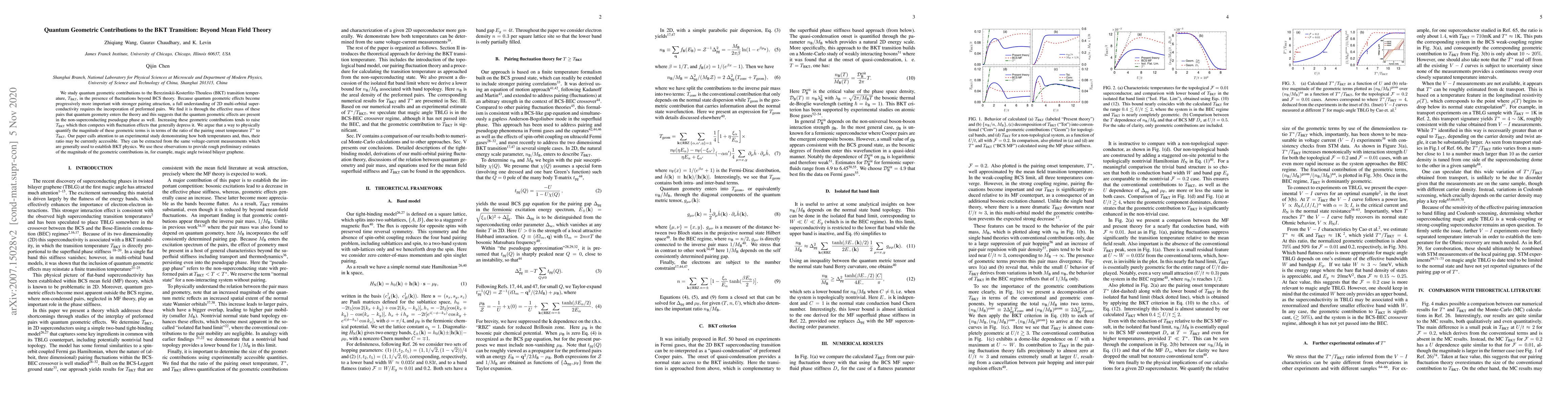This research explores how quantum geometric effects impact the Berezinskii-Kosterlitz-Thouless (BKT) transition temperature in two-dimensional systems, surpassing mean-field theory. The study finds that quantum geometry raises T_BKT, competing with fluctuation effects that typically lower it. It proposes quantifying these geometric terms via the ratio of pairing onset temperature T* to T_BKT, suggesting experimental accessibility through voltage-current measurements. Preliminary estimates of geometric contributions are provided for materials like magic angle twisted bilayer graphene.