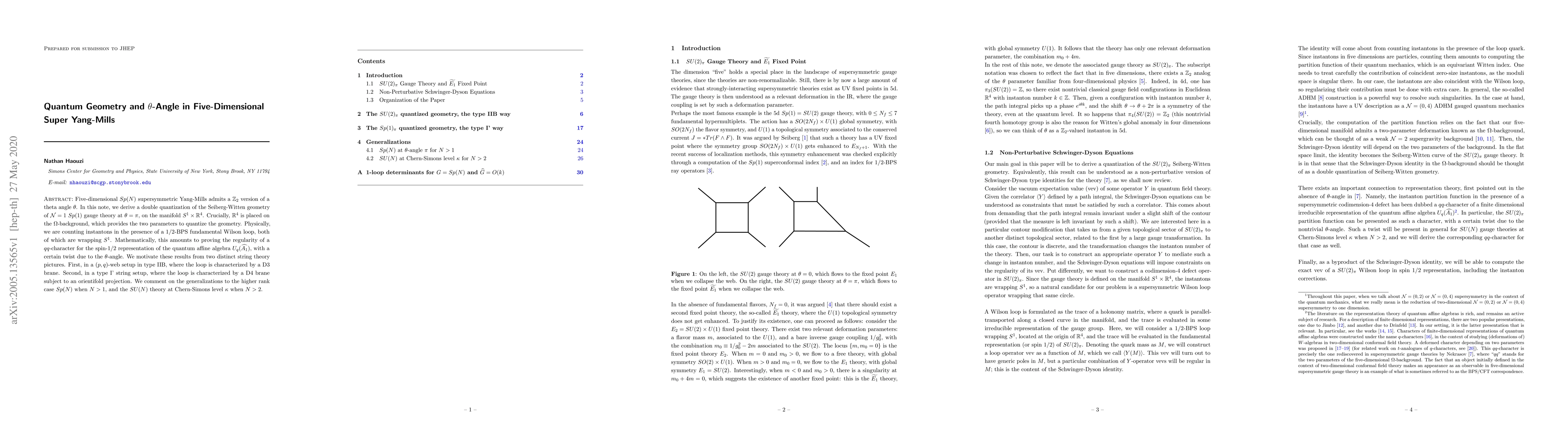 Researchers derived a double quantization of Seiberg-Witten geometry for $Sp(1)$ gauge theory at $ heta=rac{ ext{ε}}{2}$, with implications for instantons and string theory pictures.