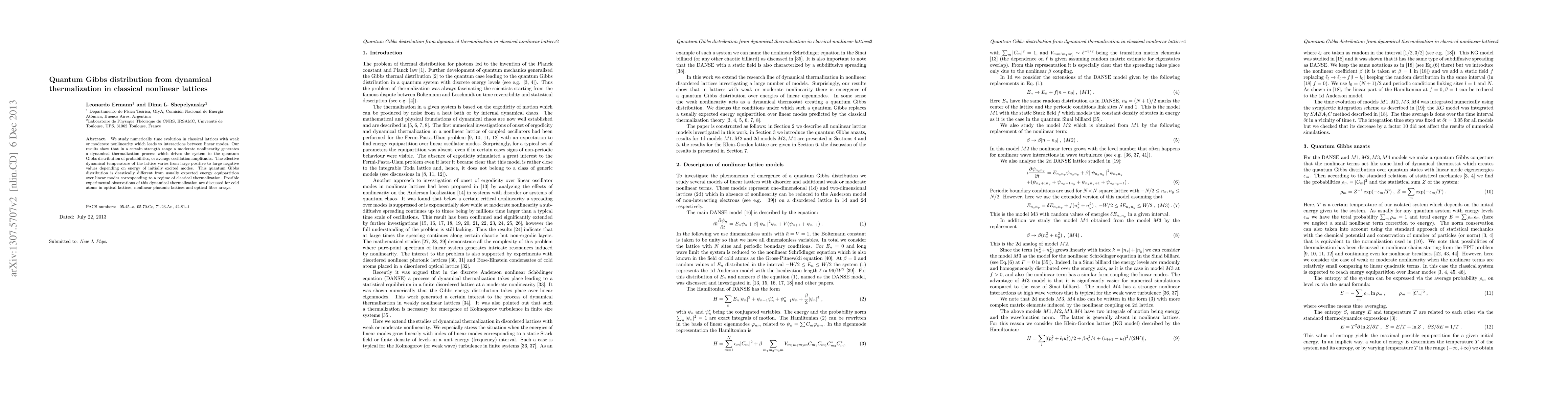 This paper explores the emergence of a quantum Gibbs distribution through dynamical thermalization in classical nonlinear lattices, demonstrating that moderate nonlinearity can lead to this phenomenon. The study highlights the potential for observing these effects in cold atoms, photonic lattices, and optical fiber arrays.