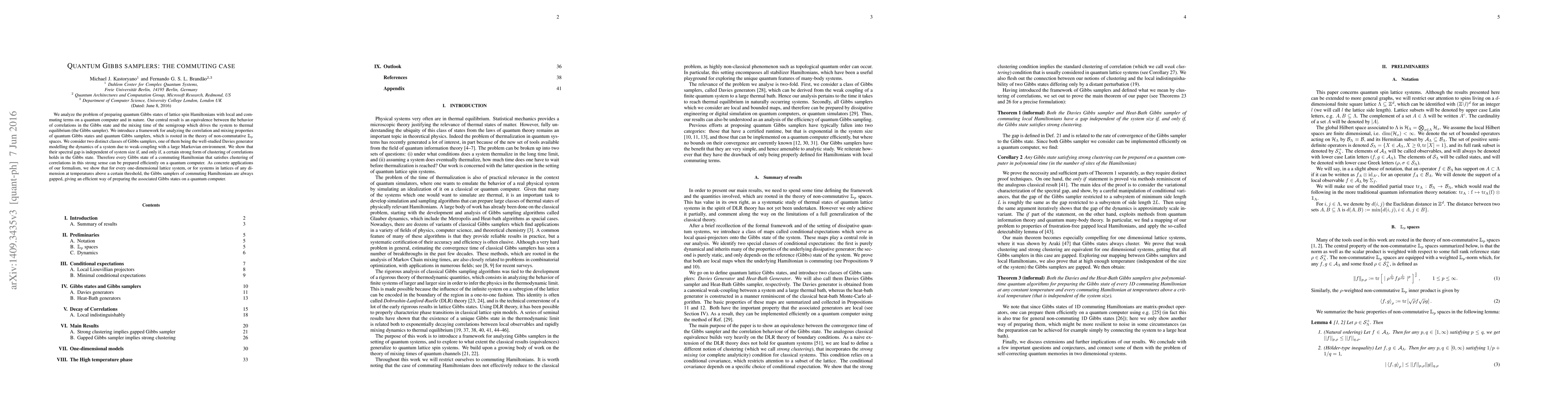 We analyze the problem of preparing quantum Gibbs states of lattice spin Hamiltonians with local and commuting terms on a quantum computer and in nature. Our central result is an equivalence between the behavior of correlations in the Gibbs state and the mixing time of the semigroup which drives the system to thermal equilibrium (the Gibbs sampler). We introduce a framework for analyzing the correlation and mixing characteristics of quantum Gibbs states and quantum Gibbs samplers, which is rooted in the theory of non-commutative Lp spaces. We consider two distinct classes of Gibbs samplers, one of which being the well-studied Davies generators modelling the dynamics on the system due to weak-coupling with a large Markovian environment. We show that their gap is independent of system size if, and only if, a certain strong form of clustering of correlations holds in the Gibbs state. As concrete applications of our formalism, we show that for every one-dimensional lattice system, or for systems in lattices of any dimension at high enough temperatures, the Gibbs samplers of commuting Hamiltonians are always gapped, giving an efficient way of preparing these states on a quantum computer.