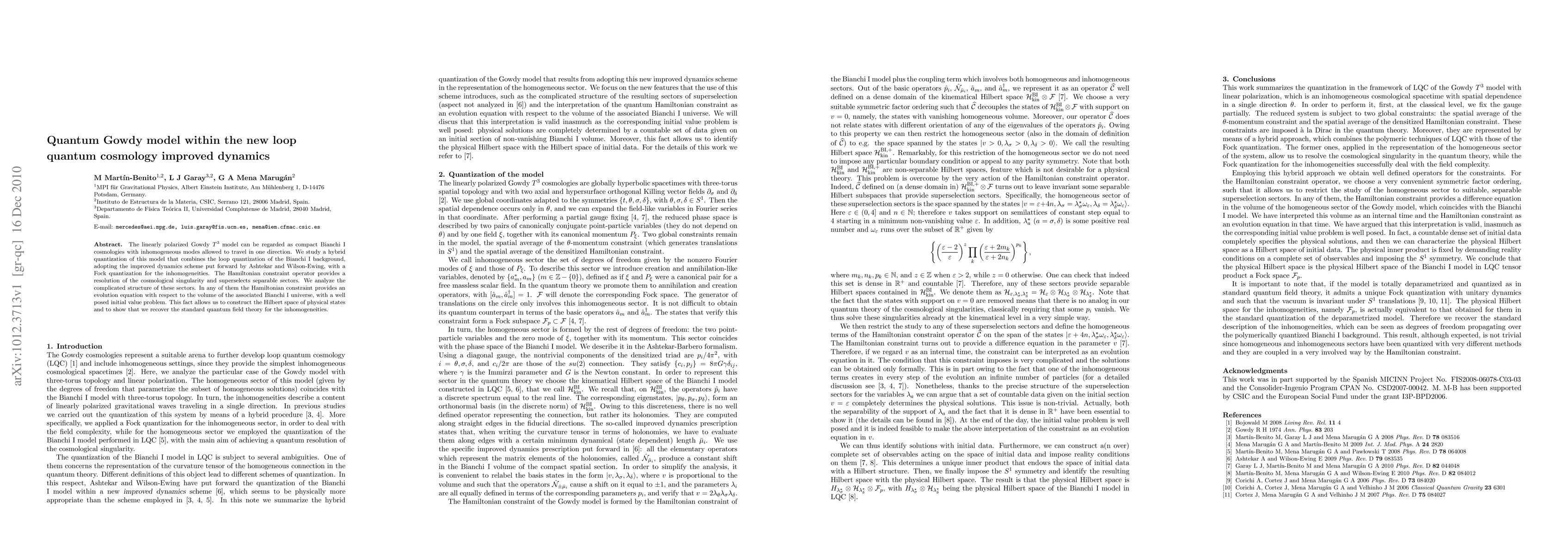 This paper quantizes the Gowdy $T^3$ model using a hybrid approach combining loop quantum cosmology for the background and Fock quantization for inhomogeneities, resolving the cosmological singularity. The study shows that the Hamiltonian constraint leads to a well-posed evolution equation, enabling the construction of the Hilbert space and recovery of standard quantum field theory for inhomogeneities.