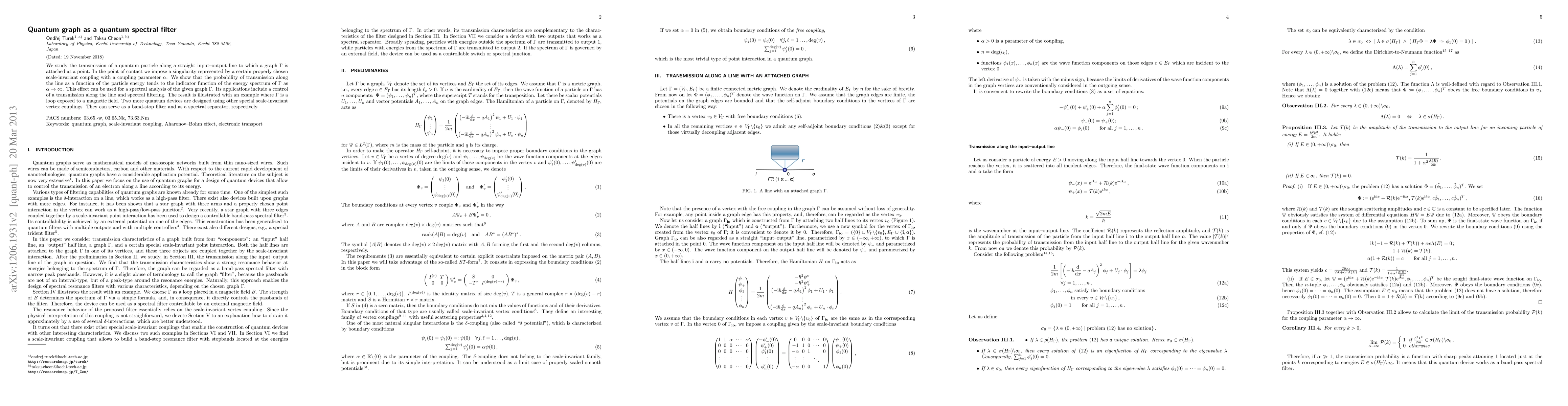 A quantum graph attached to a line can filter energy transmission based on its spectral properties, allowing for control of transmission and spectral analysis.