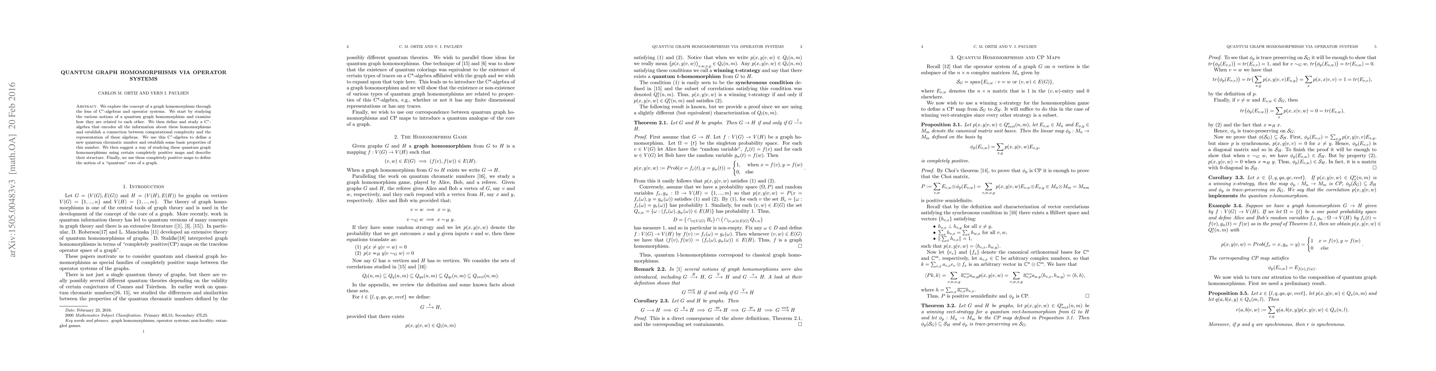 Researchers explored the concept of quantum graph homomorphisms through operator systems, defining a new quantum chromatic number and establishing connections between computational complexity and graph theory.