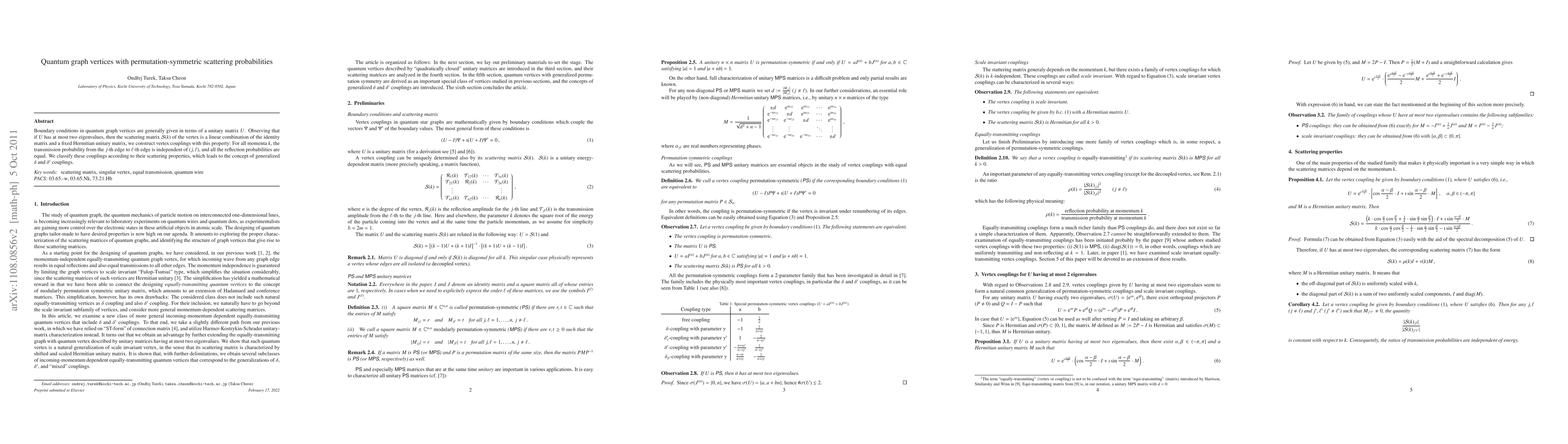 Boundary conditions in quantum graph vertices are generally given in terms of a unitary matrix $U$. Observing that if $U$ has at most two eigenvalues, then the scattering matrix $\mathcal{S}(k)$ of the vertex is a linear combination of the identity matrix and a fixed Hermitian unitary matrix, we construct vertex couplings with this property: For all momenta $k$, the transmission probability from the $j$-th edge to $\ell$-th edge is independent of $(j,\ell)$, and all the reflection probabilities are equal. We classify these couplings according to their scattering properties, which leads to the concept of generalized $\delta$ and $\delta'$ couplings.
