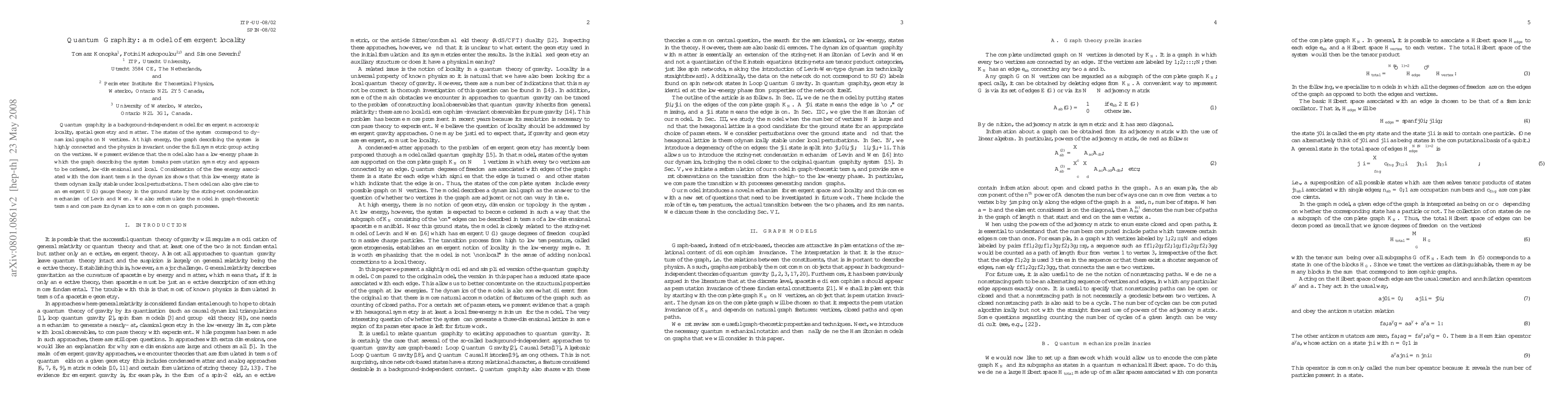 Quantum graphity is a background independent model for emergent locality, spatial geometry and matter. The states of the system correspond to dynamical graphs on N vertices. At high energy, the graph describing the system is highly connected and the physics is invariant under the full symmetric group acting on the vertices. We present evidence that the model also has a low-energy phase in which the graph describing the system breaks permutation symmetry and appears to be ordered, low-dimensional and local. Consideration of the free energy associated with the dominant terms in the dynamics shows that this low-energy state is thermodynamically stable under local perturbations. The model can also give rise to an emergent U(1) gauge theory in the ground state by the string-net condensation mechanism of Levin and Wen. We also reformulate the model in graph-theoretic terms and compare its dynamics to some common graph processes.
