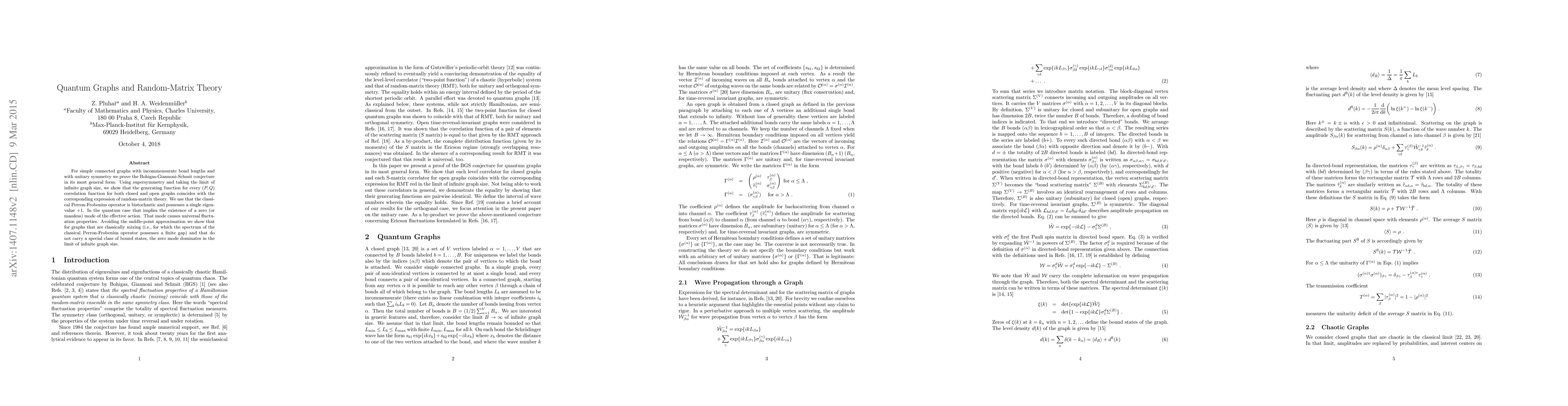 Researchers prove the Bohigas-Giannoni-Schmit conjecture for simple connected graphs with incommensurate bond lengths, showing that quantum fluctuations lead to universal properties due to a zero-mode in the effective action. The study also highlights the importance of classically mixing graphs and bound states in graph dynamics.