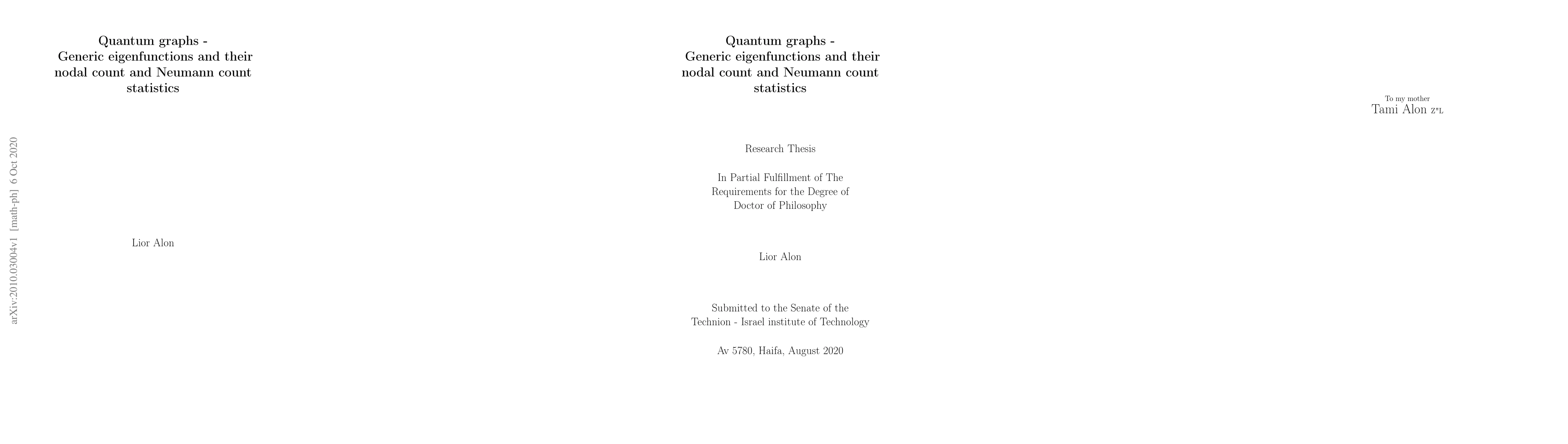In this thesis, we study Laplacian eigenfunctions on metric graphs, also known as quantum graphs. We restrict the discussion to standard quantum graphs. These are finite connected metric graphs with functions that satisfy Neumann vertex conditions. The first goal of this thesis is the study of the nodal count problem. That is the number of points on which the $n$th eigenfunction vanishes. We provide a probabilistic setting using which we are able to define the nodal count\textquoteright s statistics. We show that the nodal count statistics admit a topological symmetry by which the first Betti number of the graph can be obtained. We revise a conjecture that predicts a universal Gaussian behavior of the nodal count statistics for large graphs and we prove it for a certain family of graphs. The second goal is to formulate and study the Neumann count, which is the number of local extrema of the $n$th eigenfunction. This counting problem is motivated by the Neumann partitions of planar domains, a novel concept in spectral geometry. We provide uniform bounds on the Neumann count and investigate its statistics. We show that the Neumann count provides complimentary geometrical information to that obtained from the nodal count. We show that for a certain family of growing tree graphs the Neumann count statistics approaches a Gaussian distribution. The third goal is a genericity result, which justifies the generality of the Neumann count discussion. To this day it was known that generically, eigenfunctions do not vanish on vertices. We generalize this result to derivatives at vertices as well. That is, generically, the derivatives of an eigenfunction on interior vertices do not vanish.