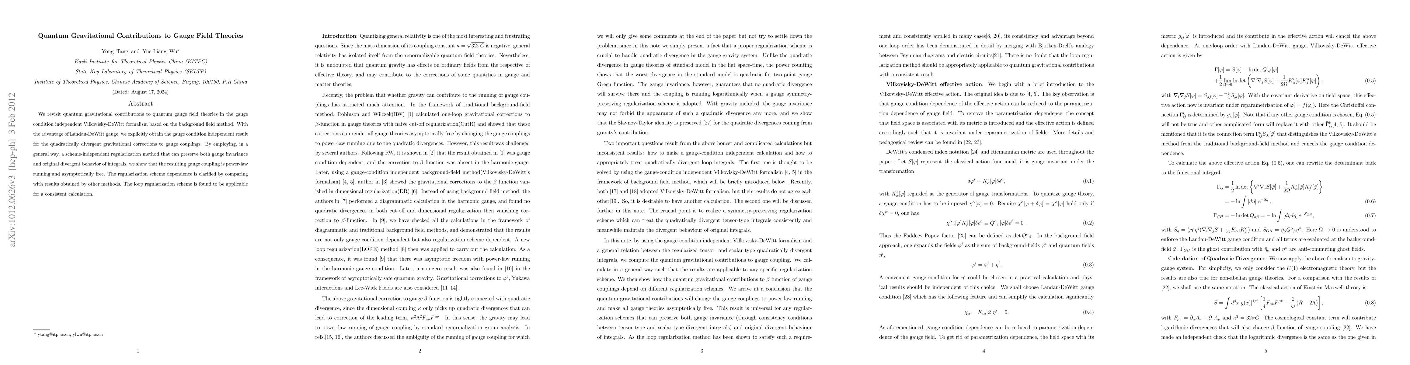 This paper investigates quantum gravitational effects on gauge field theories using the Vilkovisky-DeWitt formalism, revealing gauge condition independent results for gravitational corrections. The study employs a regularization method preserving gauge invariance and divergent behavior, demonstrating power-law running and asymptotic freedom of gauge couplings, with loop regularization found to be consistent.
