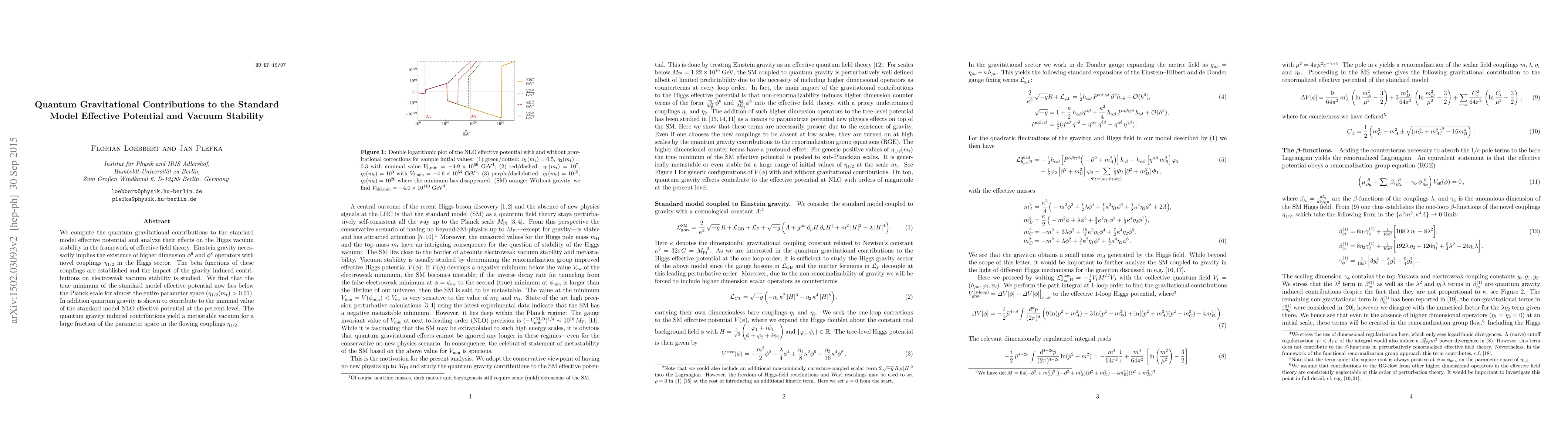 Quantum gravity affects Higgs vacuum stability, causing a metastable vacuum in about 60% of the parameter space, and lowering the minimum effective potential value by up to 1%.
