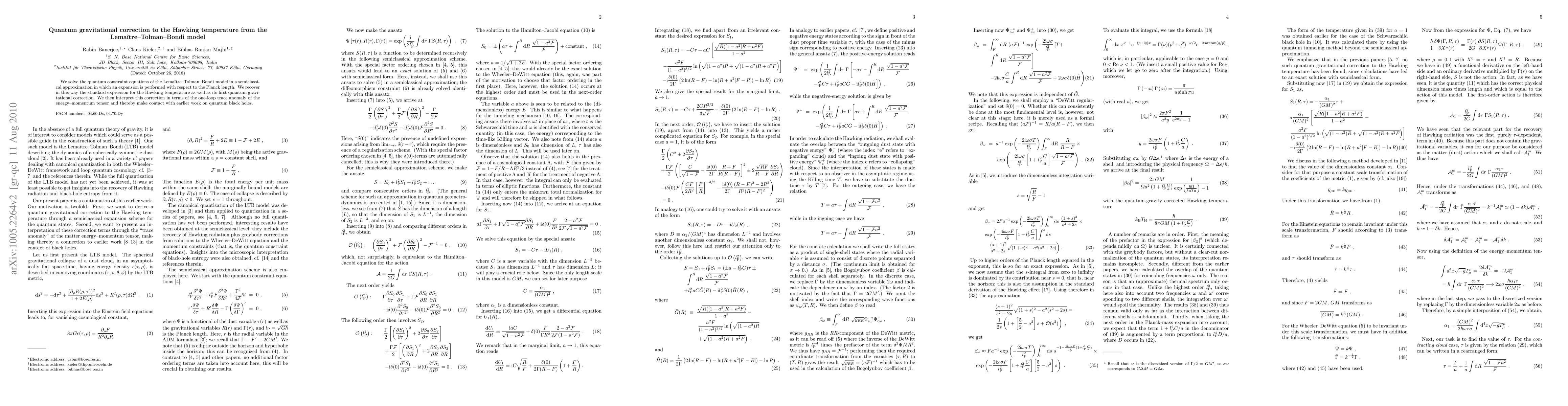 This paper quantifies the quantum gravitational correction to the Hawking temperature in the Lemaitre-Tolman-Bondi model, deriving it through a semiclassical approximation and linking it to the one-loop trace anomaly of the energy-momentum tensor. The result extends the standard Hawking temperature with a first-order quantum correction.