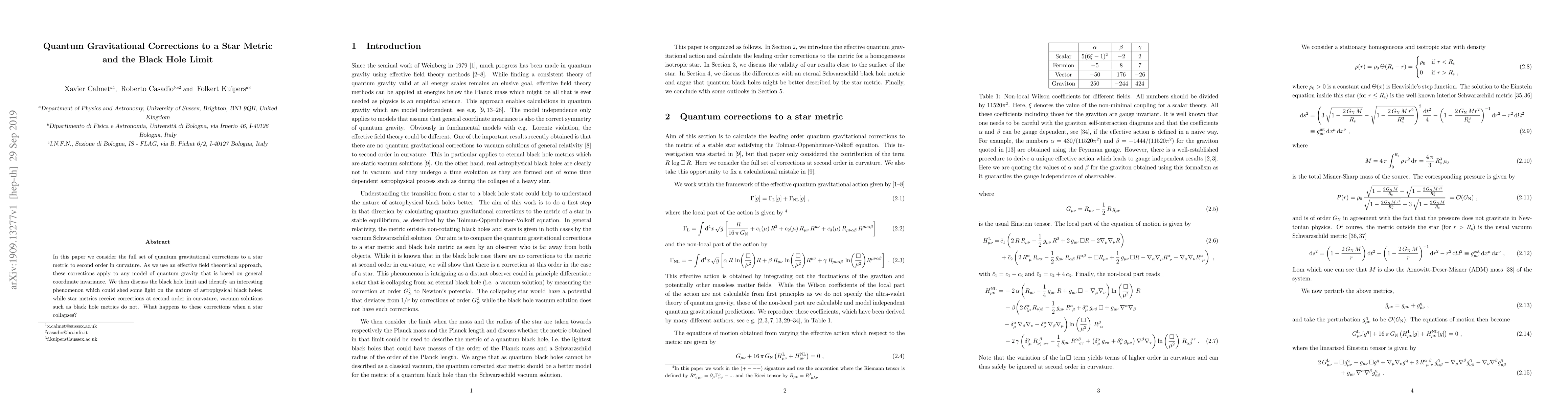 This paper examines quantum gravitational corrections to star metrics up to second order in curvature using an effective field theory, revealing that while star metrics are corrected, black hole metrics remain unaffected. It explores the implications of these findings for the transition from a star to a black hole.