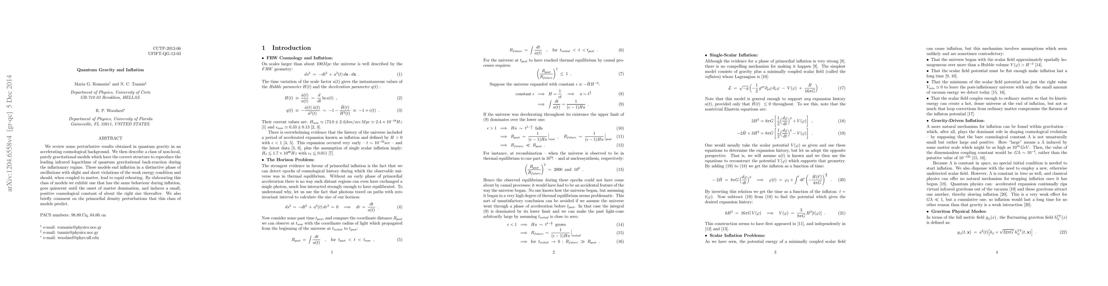 We review some perturbative results obtained in quantum gravity in an accelerating cosmological background. We then describe a class of non-local, purely gravitational models which have the correct structure to reproduce the leading infrared logarithms of quantum gravitational back-reaction during the inflationary regime. These models end inflation in a distinctive phase of oscillations with slight and short violations of the weak energy condition and should, when coupled to matter, lead to rapid reheating. By elaborating this class of models we exhibit one that has the same behaviour during inflation, goes quiescent until the onset of matter domination, and induces a small, positive cosmological constant of about the right size thereafter. We also briefly comment on the primordial density perturbations that this class of models predict.