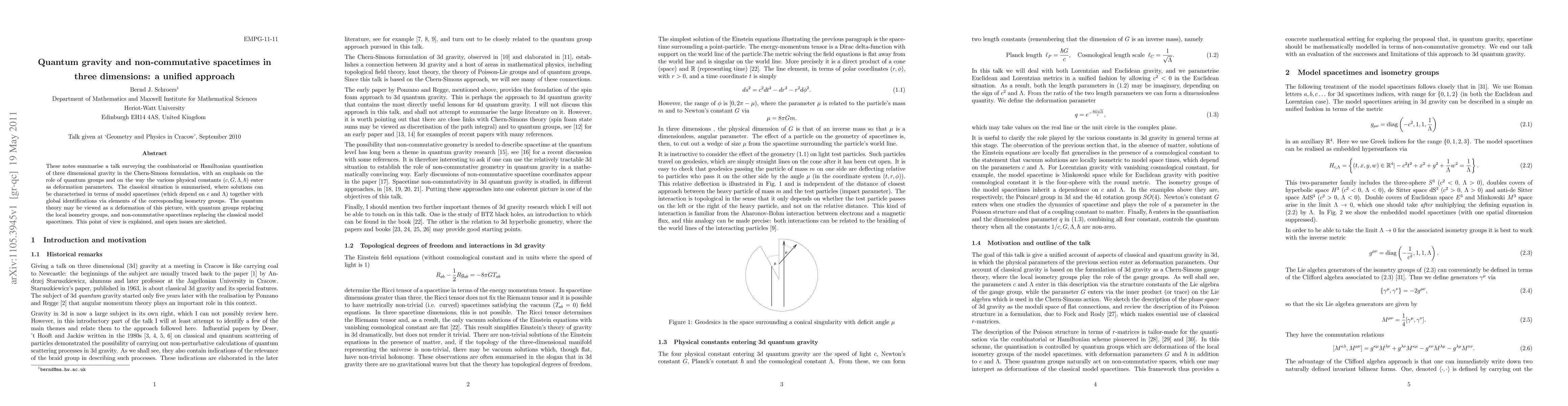 This paper surveys the Hamiltonian quantization of three-dimensional gravity in Chern-Simons formulation, focusing on quantum groups and the role of physical constants as deformation parameters. It discusses how quantum theory deforms classical model spacetimes into non-commutative ones, with quantum groups replacing classical isometry groups.