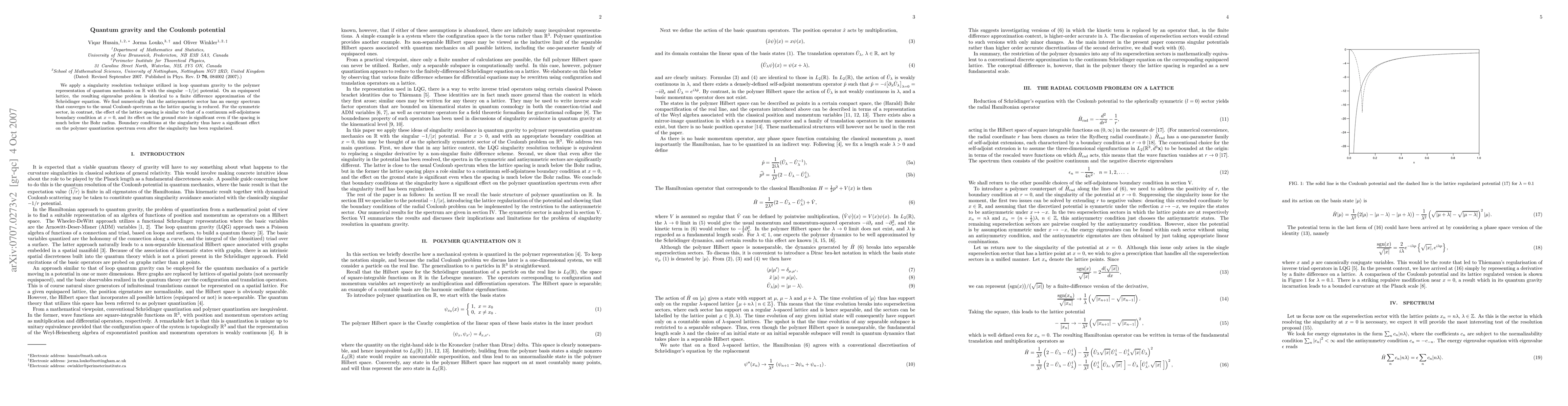 We apply a singularity resolution technique utilized in loop quantum gravity to the polymer representation of quantum mechanics on R with the singular -1/|x| potential. On an equispaced lattice, the resulting eigenvalue problem is identical to a finite difference approximation of the Schrodinger equation. We find numerically that the antisymmetric sector has an energy spectrum that converges to the usual Coulomb spectrum as the lattice spacing is reduced. For the symmetric sector, in contrast, the effect of the lattice spacing is similar to that of a continuum self-adjointness boundary condition at x=0, and its effect on the ground state is significant even if the spacing is much below the Bohr radius. Boundary conditions at the singularity thus have a significant effect on the polymer quantization spectrum even after the singularity has been regularized.