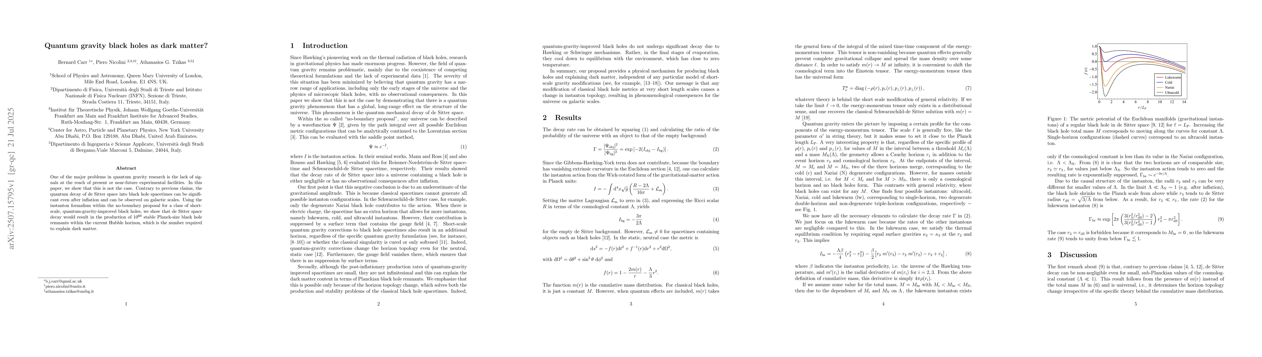 One of the major problems in quantum gravity research is the lack of signals at the reach of present or near-future experimental facilities. In this paper, we show that this is not the case. Contrary to previous claims, the quantum decay of de Sitter space into black hole spacetimes can be significant even after inflation and can be observed on galactic scales. Using the instanton formalism within the no-boundary proposal for a class of short-scale, quantum-gravity-improved black holes, we show that de Sitter space decay would result in the production of $10^{60}$ stable Planck-size black hole remnants within the current Hubble horizon, which is the number required to explain dark matter.