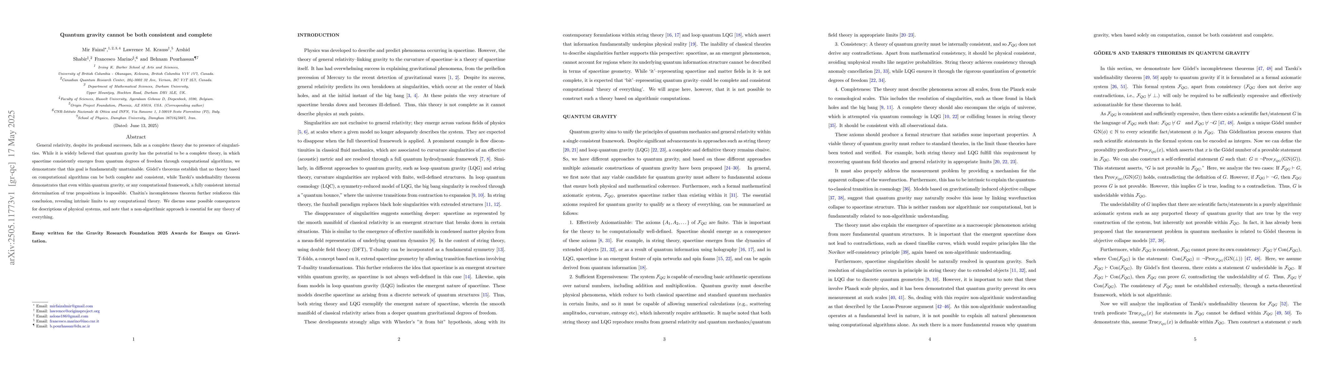 This research challenges the widely held belief that quantum gravity can provide a complete description of spacetime through computational algorithms, suggesting that non-algorithmic approaches are essential for a theory of everything.