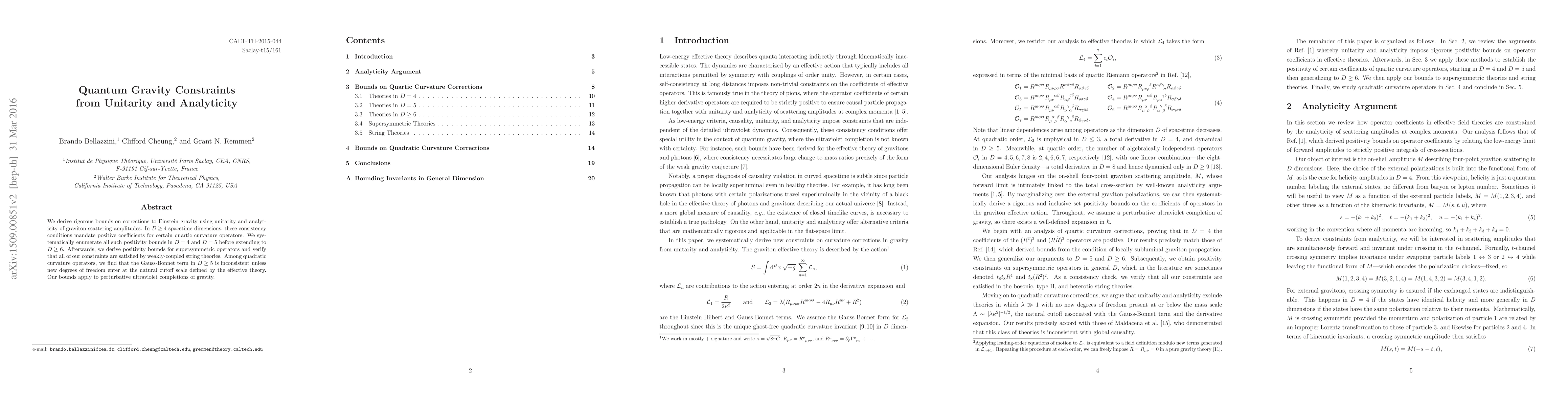 This paper derives rigorous bounds on corrections to Einstein gravity using unitarity and analyticity of graviton scattering amplitudes, showing that certain quartic curvature operators must have positive coefficients in $D\geq 4$ dimensions. It systematically enumerates these bounds in $D=4$ and $D=5$ and extends the analysis to $D\geq 6$, finding that the Gauss-Bonnet term is inconsistent in $D\geq 5$ without new degrees of freedom.