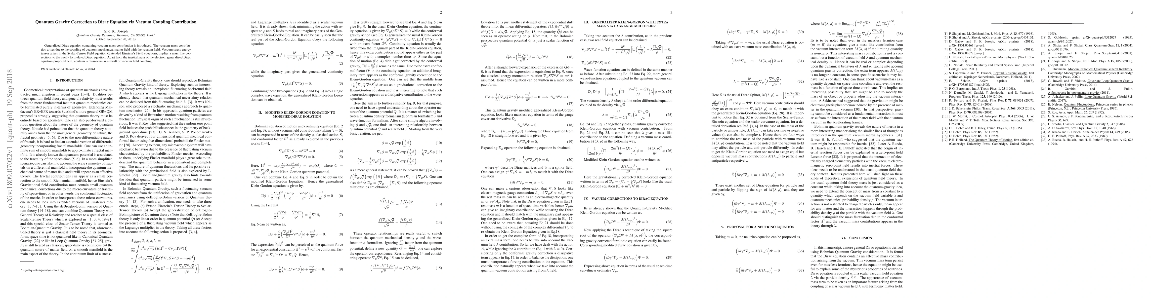Generalized Dirac equation containing vacuum-mass contribution is introduced. The vacuum-mass contribution arises due to the coupling of quantum mechanical matter field with the vacuum field. Vacuum stress energy tensor arises in the Scalar-Tensor Field equation (Extended Einstein's Field equation), implies a mass like corrections to the newly formulated Dirac equation. Apart from the inertial mass of the electron, generalized Dirac equation proposed here, contains a mass-term as a result of vacuum field coupling.