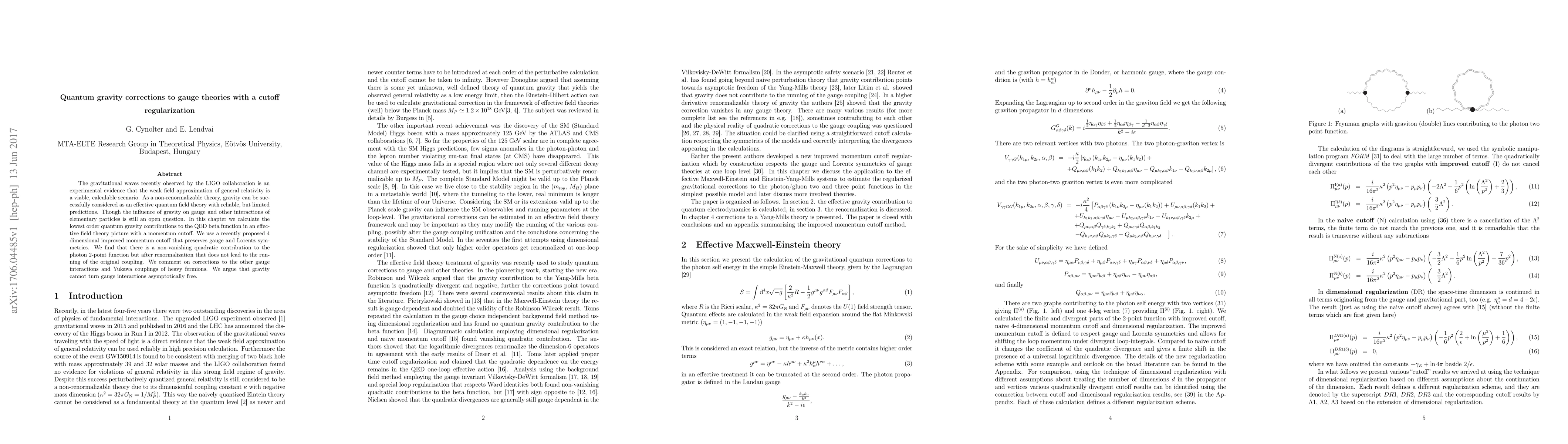 Gravity can be considered as an effective quantum field theory with reliable, but limited predictions. Though the influence of gravity on gauge and other interactions of elementary particles is still an open question. We calculate the lowest order quantum gravity contributions to the QED beta function in an effective field theory picture with a momentum cutoff. We use a recently proposed 4 dimensional improved momentum cutoff that preserves gauge and Lorentz symmetries. We find that there is a non-vanishing quadratic contribution to the photon 2-point function but after renormalization that does not lead to the running of the original coupling. We comment on corrections to the other gauge interactions and Yukawa couplings of heavy fermions. We argue that gravity cannot turn gauge interactions asymptotically free.