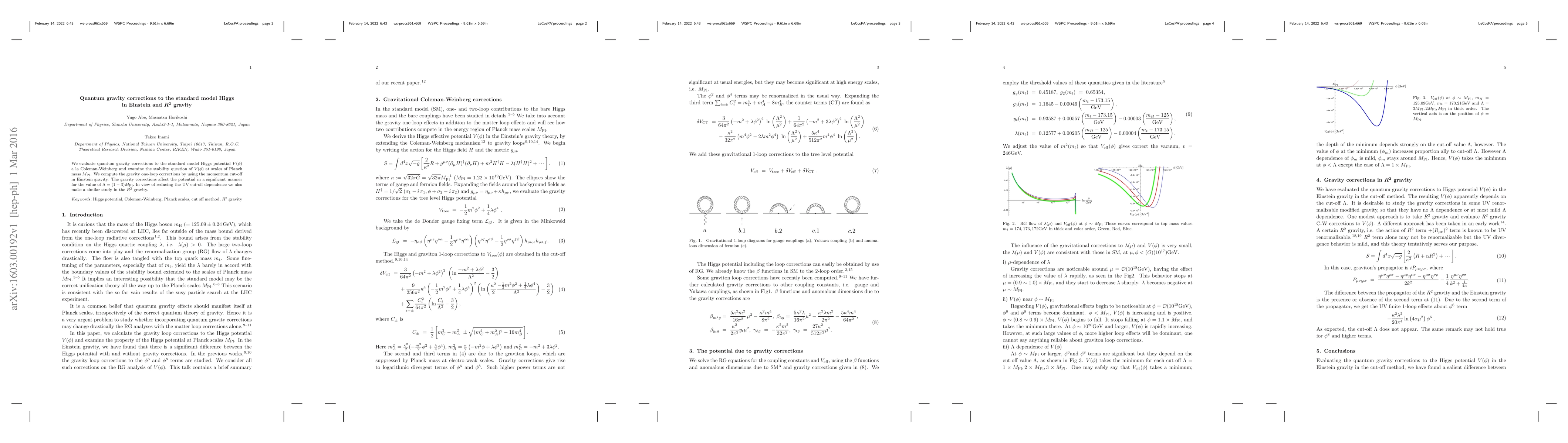We evaluate quantum gravity corrections to the standard model Higgs potential $V(\phi)$ a la Coleman-Weinberg and examine the stability question of $V(\phi)$ at scales of Planck mass $M_{\rm Pl}$. We compute the gravity one-loop corrections by using the momentum cut-off in Einstein gravity. The gravity corrections affect the potential in a significant manner for the value of $\Lambda= (1 - 3)M_{\rm Pl}.$ In view of reducing the UV cut-off dependence we also make a similar study in the $R^2$ gravity.