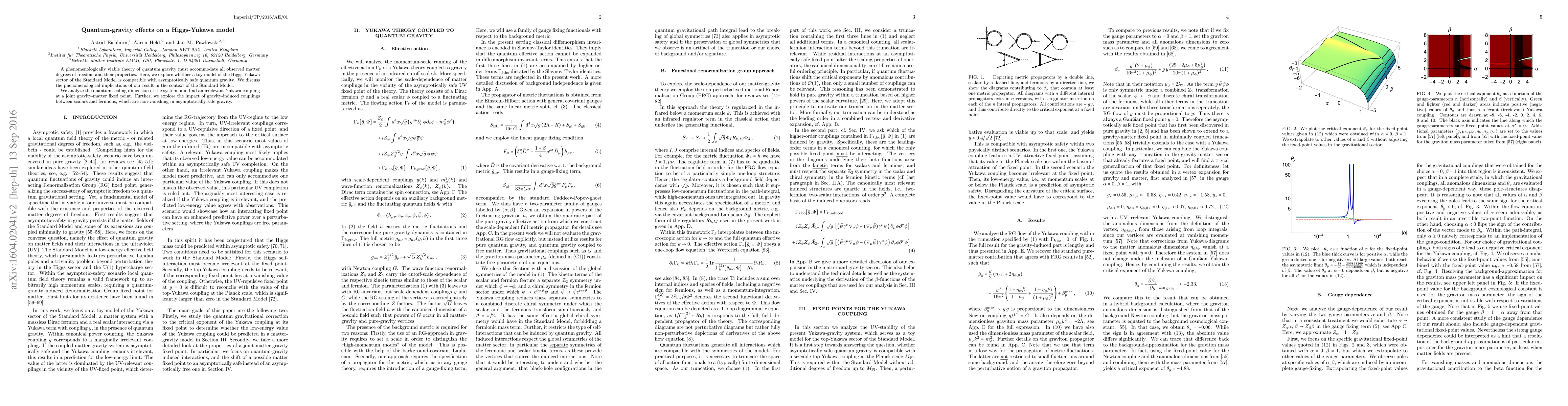 A phenomenologically viable theory of quantum gravity must accommodate all observed matter degrees of freedom and their properties. Here, we explore whether a toy model of the Higgs-Yukawa sector of the Standard Model is compatible with asymptotically safe quantum gravity. We discuss the phenomenological implications of our result in the context of the Standard Model. We analyze the quantum scaling dimension of the system, and find an irrelevant Yukawa coupling at a joint gravity-matter fixed point. Further, we explore the impact of gravity-induced couplings between scalars and fermions, which are non-vanishing in asymptotically safe gravity.