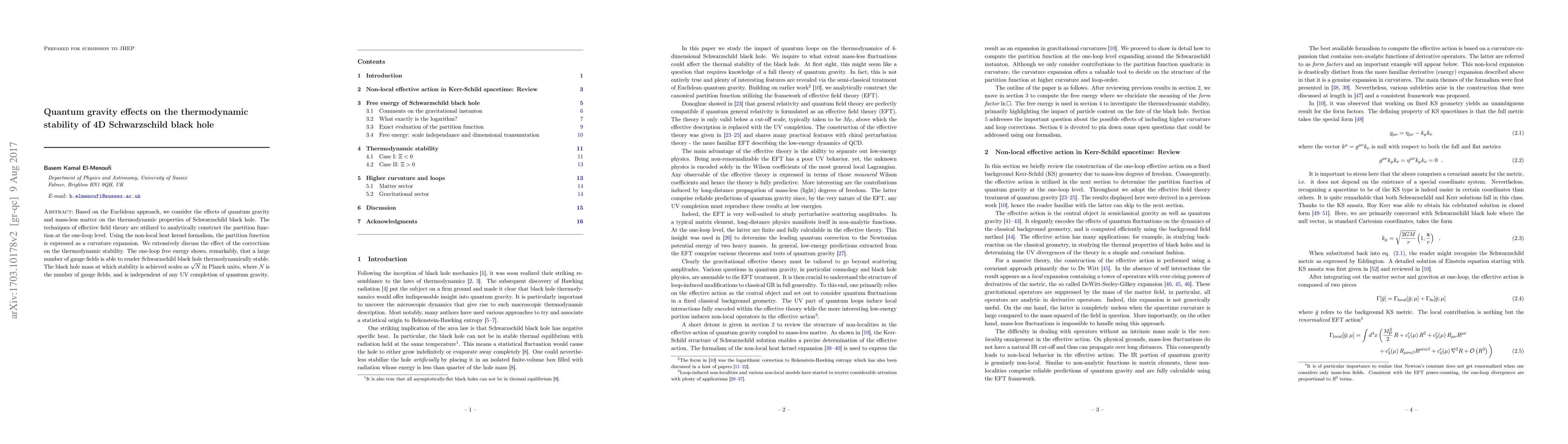 This research uses effective field theory and the Euclidean approach to explore quantum gravity's impact on the thermodynamic stability of a Schwarzschild black hole. The study reveals that a significant number of gauge fields can stabilize the black hole, with stability scaling as $\sqrt{N}$ in Planck units, independent of quantum gravity's UV completion.